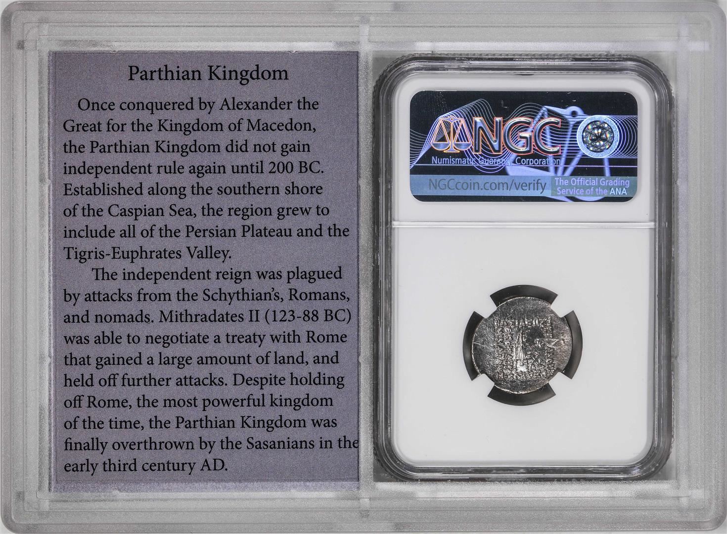 Parthian Kingdom Sinatruces c.93-69 BC AR Drachm Ancient Coin NGC MS Story Box