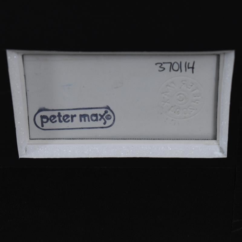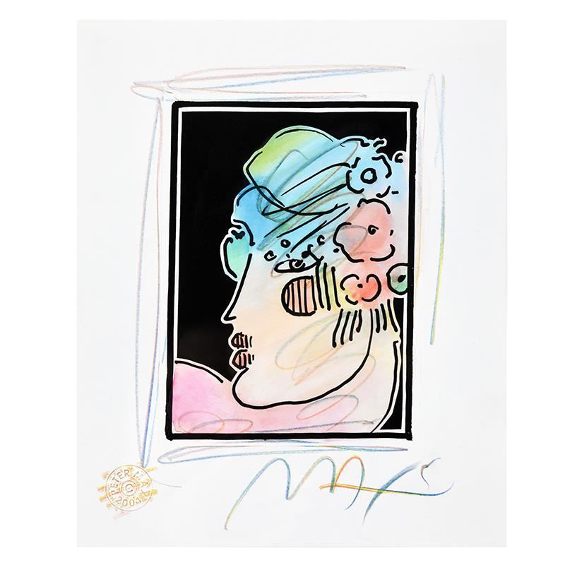 "Lady Profile with Flowers III" is a one-of-a-kind mixed media on paper, hand signed by Peter Max. Includes Certificate of Authenticity from Peter Max Studios. This piece comes custom framed. Measures approx. 16.5" x 18.5" (with frame), 7" x 9" (image).