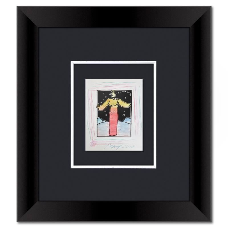 This is a one-of-a-kind mixed media on paper, hand signed by Peter Max. The piece comes custom framed with a backside cutout to display Peter Max Studio registration number 370859 certifying authenticity. Measures approximately 23" x 21" (frame), 9" x 7" (image).