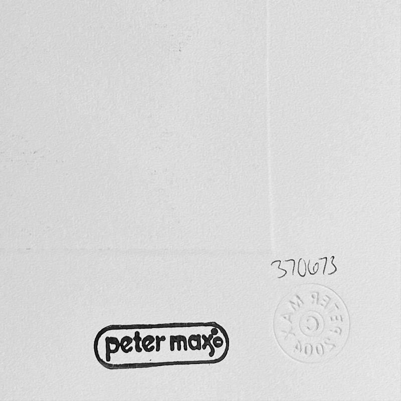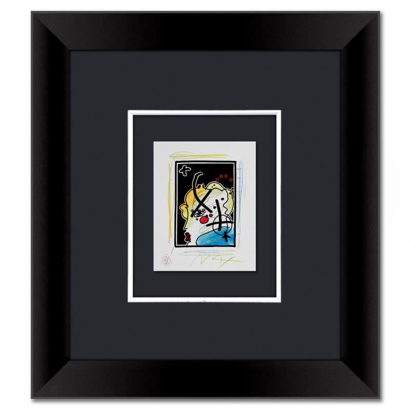 "Profile" is a one-of-a-kind mixed media on paper, hand signed by Peter Max. The piece comes custom framed with a backside cutout to display Peter Max Studio registration number 370673 certifying authenticity. Measures approximately 23" x 21" (frame), 9" x 7" (image).