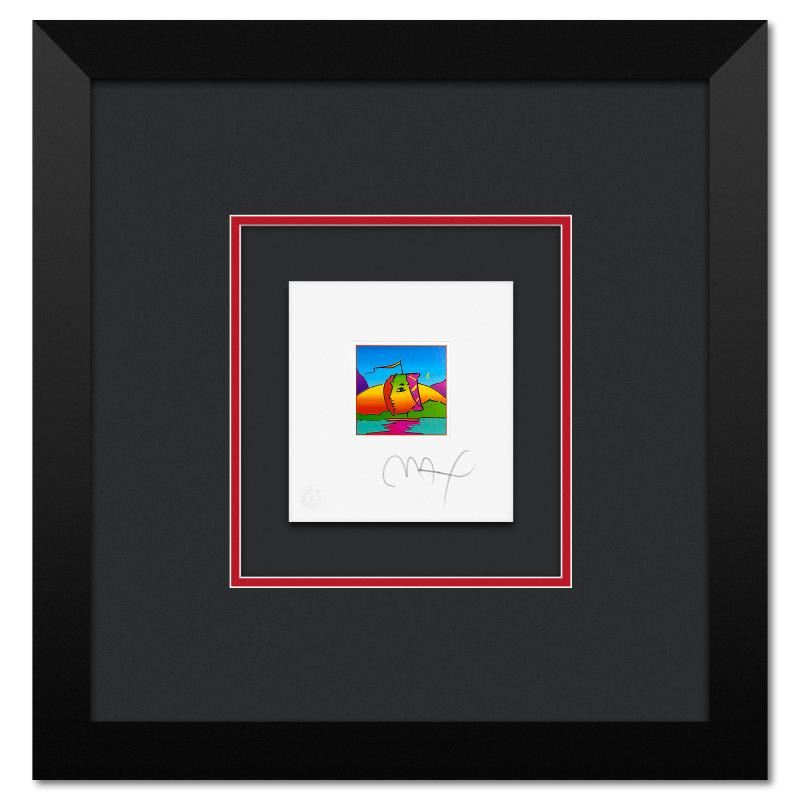 "Sail Profile" is a limited edition lithograph on paper by Peter Max, numbered and hand signed by the artist. This piece comes framed. Includes Certificate of Authenticity from Peter Max Studios. Measures approx. 15" x 14.5" (frame), 5" x 4.5" (image).