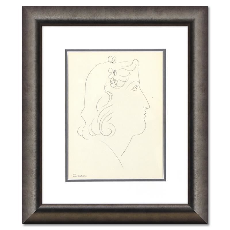 This is a lithograph by Pierre Henri Matisse (1869-1954), dated 1942 and bearing the plate signature of the artist. This piece comes custom framed. Includes Letter of Authenticity. Measures approx. 18" x 20.5"(frame), 9" x 12" (image). This piece was newly framed but do to handling there are minor scratches on the frame panels.