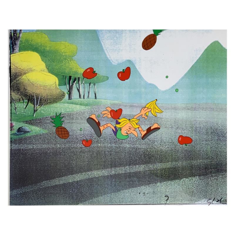 This is an original production cel used in the animated series The Pink Panther. This animated cel comes with a color background and includes 1 production sketch(es). Includes Letter of Authenticity. Measures approximately 11" x 12.5".