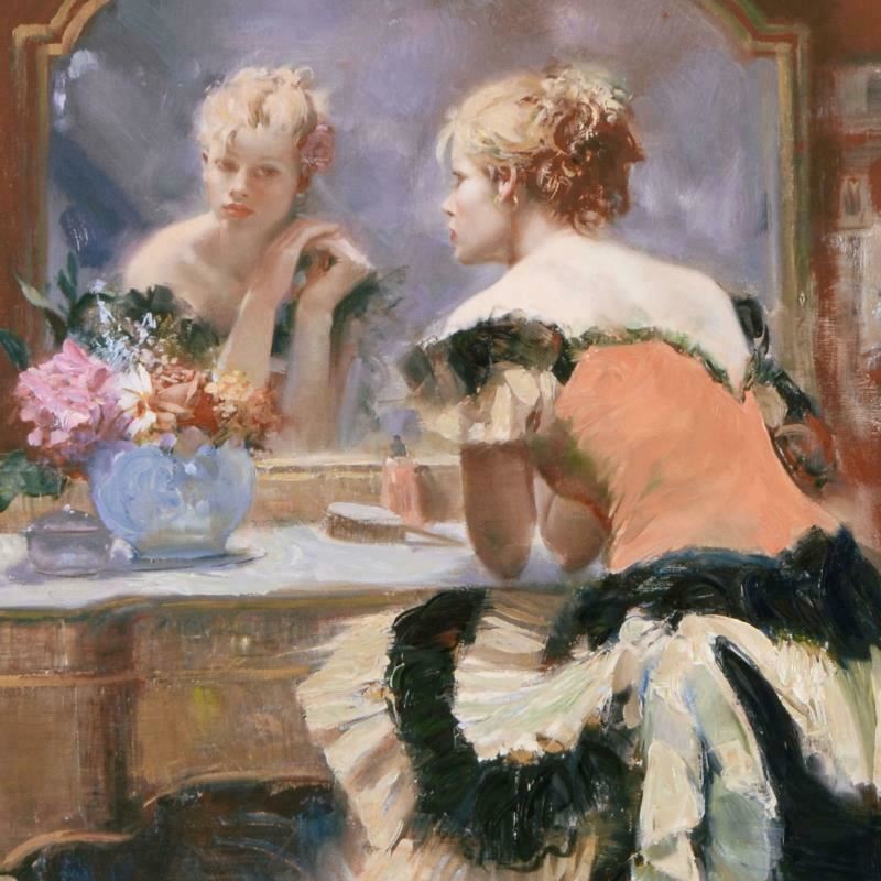 "Before the Show" is an artist embellished limited edition giclee on canvas by Pino (1939-2010), Numbered and hand signed by the artist. Includes Certificate of Authenticity. Measures approx. 24" x 32" (image). This piece is not stretched.