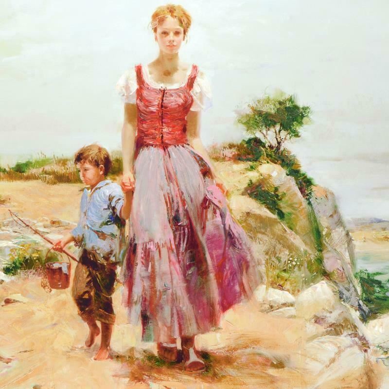"Cliffside at the Sea" is a limited edition giclee on stretched canvas that has been hand-embellished by Pino himself, AP Numbered and Hand signed by Pino (1939-2010). Includes Certificate of Authenticity. Measures approx. 40" x 32" (image).