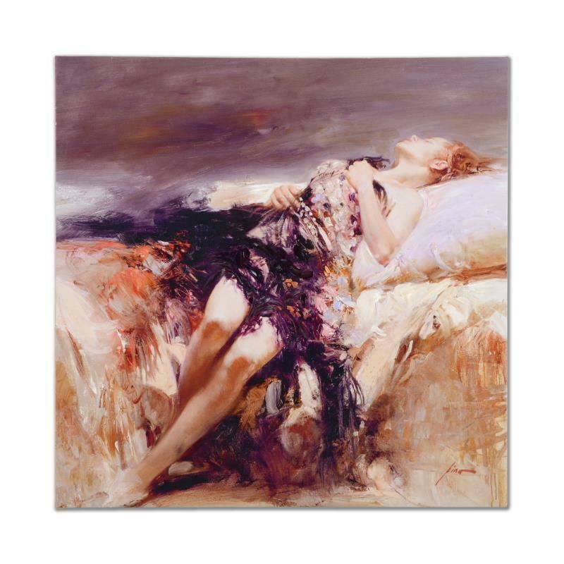 "Ecstasy" is a limited edition giclee on stretched canvas that has been hand-embellished by Pino himself, AP Numbered and Hand signed by Pino (1939-2010). Includes Certificate of Authenticity. Measures approx. 36" x 36" (image).