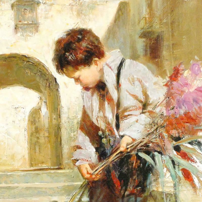 "Family Time" is an artist embellished limited edition giclee on canvas by Pino (1939-2010), Numbered and hand signed by the artist. Includes Certificate of Authenticity. Measures approx. 32" x 40" (image). This piece is not stretched.
