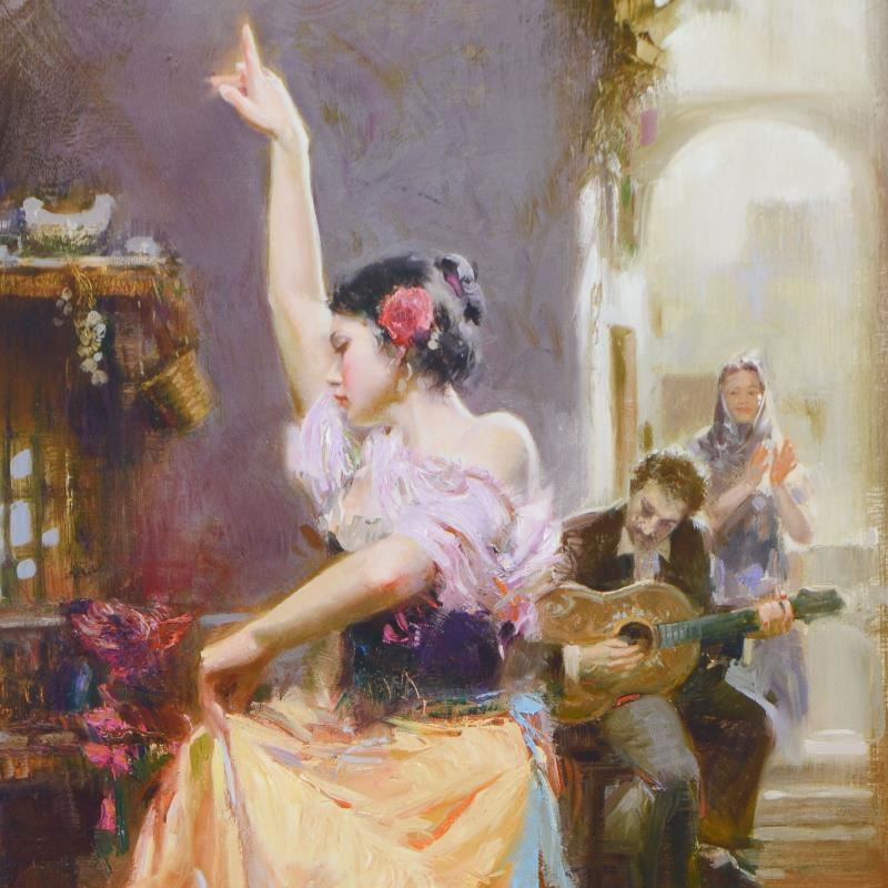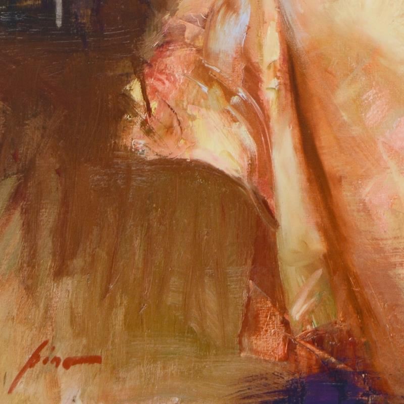 Pino's portraits allow glimpses into intensely personal, intimate spaces, conveying emotion through rich, warm color and sensual brushwork. "Isabella" is an artist-embellished limited edition giclee on canvas by Pino (1939-2010). The piece is numbered, hand signed, and includes certificate of authenticity. Measures approximately 40" x 30" (image).