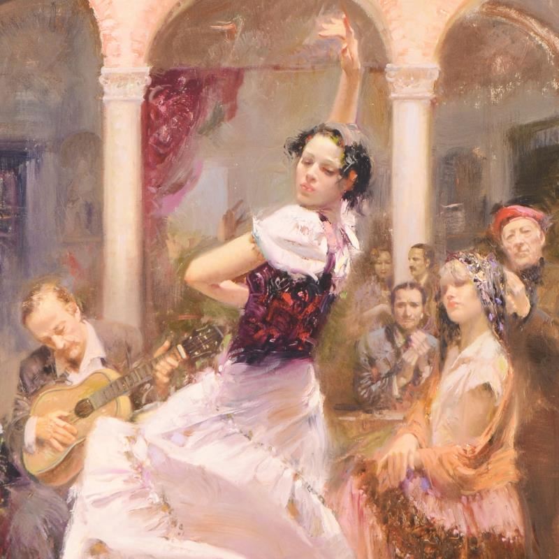 "Seville In My Heart" is a limited edition giclee on paper by Pino (1939-2010). The piece comes numbered and is hand signed by the artist. Includes Certificate of Authenticity. Measures approximately 20 x 16" (image).