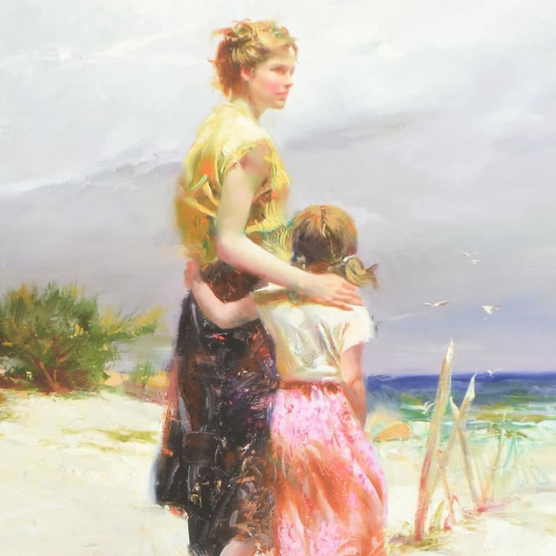 "Summer's Breeze" is a limited edition giclee on paper by Pino (1939-2010). The piece comes numbered and is hand signed by the artist. Includes Certificate of Authenticity. Measures approximately 16 x 16" (image).
