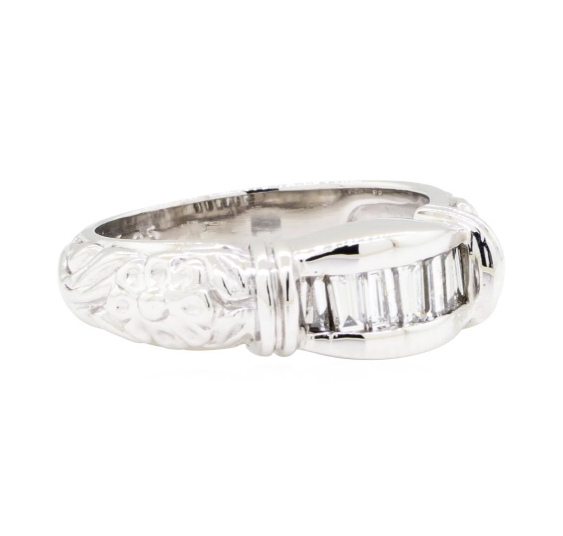 One ring featuring: platinum weighing 9.7 grams containing diamonds weighing 0.50ctw. The ring is a size 5.5.