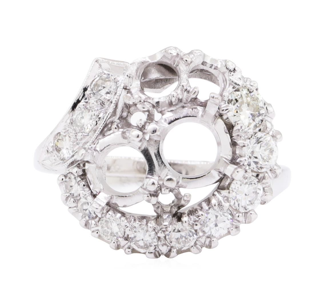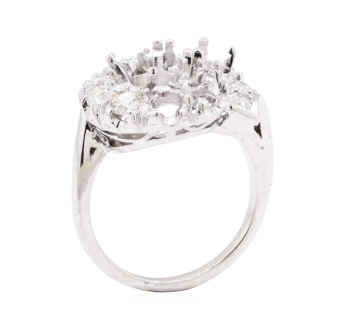 One semi-mount ring with four round empty settings featuring: platinum weighing 8.6 grams containing diamonds weighing 1.00ctw. The ring is a size 5.5.