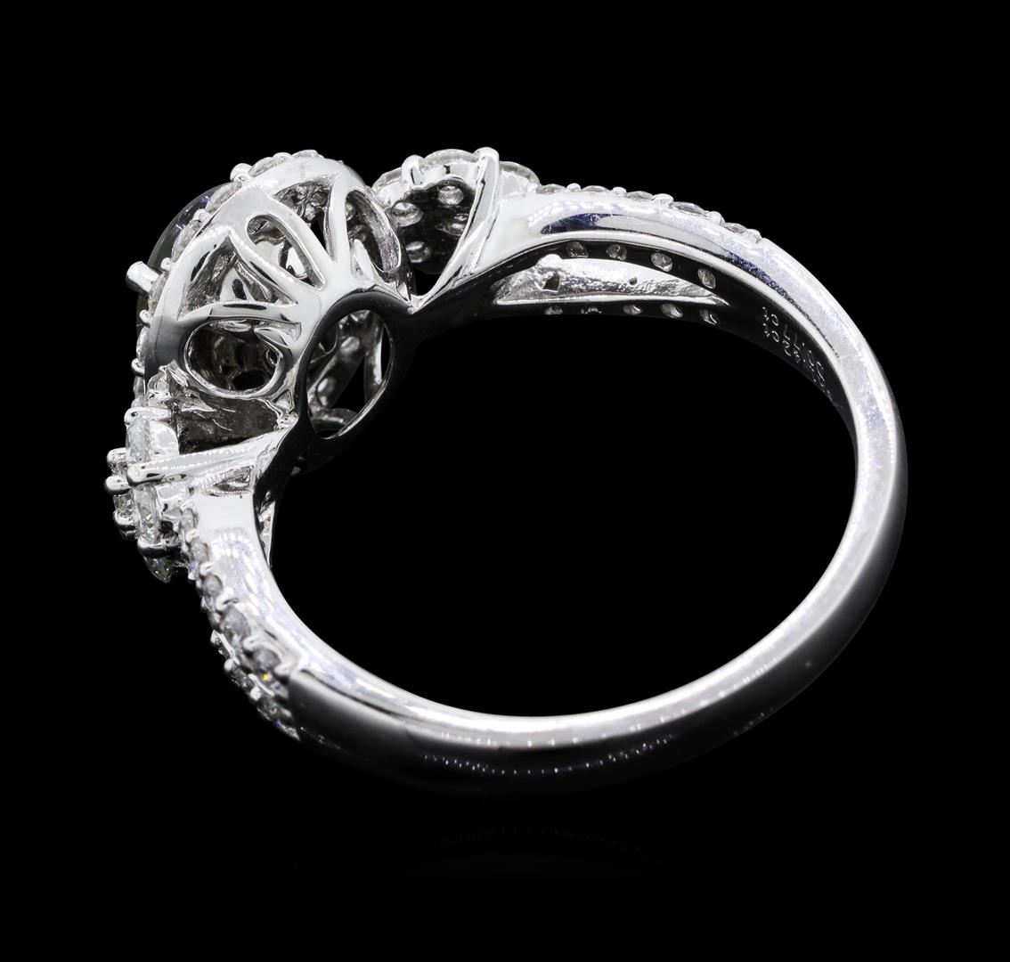One electronically tested platinum ladies cast brownish purple sapphire & diamond ring with a bright polish finish. The featured brownish purple sapphire is set within a diamond bezel accented by a single diamond floret on either side support by diamond set split shoulders, completed by a two millimeter wide band. Trademark is Orianne. Identified with markings of "PT950". Condition is new, good workmanship. Containing: One prong set oval mixed cut natural brownish purple sapphire, measuring 8.02 x 5.97 x 3.46mm, exact weight 1.42ct. Clarity is eye clean, medium, very slightly grayish, brownish purple color, (GIA brP 5/4), cut is good. Transmitting light with no distortion, transparent. No indications of heating. GIA Gemological Report attached. Graded loose prior to setting in the GIA Laboratory, Report #5171489106.Fifty-Two prong set round brilliant cut diamonds approximate total weight of 52 Stones = 0.77ct. Graded in the setting. Clarity: VS-1 to VS-2. Color: D - F. Total Weight of Colored Stones 1.42ct. Total Weight of Diamonds 0.77ct. Total Weight of Ring 7.93gm. AIG Appraised.