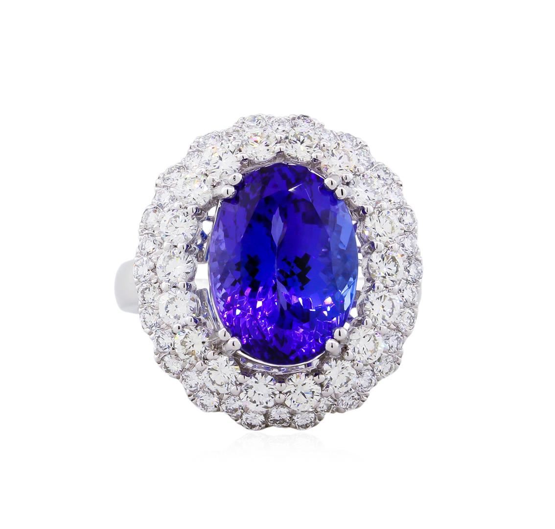 One electronically tested platinum ladies cast tanzanite and diamond ring with a bright polish finish. The featured tanzanite is set within a tiered diamond floret supported by diamond set shoulders, completed by a three millimeter wide band. Trademark is Orianne. Identified with markings of "950". Condition is new, good workmanship. Containing: One prong set oval modified brilliant cut natural tanzanite, measuring 13.58 x 10.01 x 8.07mm, exact weight 7.73ct., clarity is eye clean, type I, medium dark, moderately strong, violet color, (GIA V 6/4), cut is good. Transmitting light with no distortion, transparent. GIA Gemological Report attached. Graded loose prior to setting in the GIA Laboratory, Report #1166950081.Tanzanite is a very rare gemstone that is only found in the country of Tanzania. Originally discovered in 1967. Tiffany & Company, named the stone Tanzanite. It is found in the Usumburu Mountains that border the Umba Valley of northern Tanzania. Tanzanite occurs in gray, brown, violet, blue, reddish-purple, & green. The gem is interesting because of its exceptional pleochroism. Rotated in different directions a tanzanite will exhibit multiple changes of color. Tanzanite has a low tolerance to ultrasonic cleaning, and should not be cleaned using this method.Fifty-Eight prong set round brilliant cut diamonds approximate. Total Weight of 58 Stones = 2.13ct. Graded in the setting. Clarity: VS-1 to VS-2. Color: D - E. Total Weight of Colored Stones 7.73ct. Total Weight of Diamonds 2.13ct. Total Weight of Ring 11.81gm. GIA Appraised.