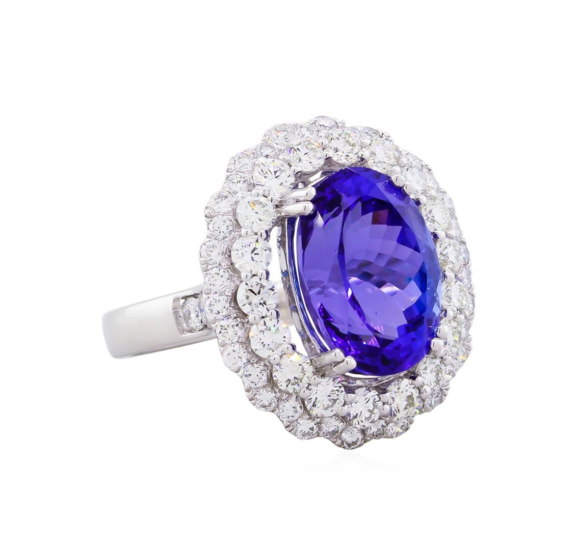 One electronically tested platinum ladies cast tanzanite and diamond ring with a bright polish finish. The featured tanzanite is set within a tiered diamond floret supported by diamond set shoulders, completed by a three millimeter wide band. Trademark is Orianne. Identified with markings of "950". Condition is new, good workmanship. Containing: One prong set oval modified brilliant cut natural tanzanite, measuring 13.58 x 10.01 x 8.07mm, exact weight 7.73ct., clarity is eye clean, type I, medium dark, moderately strong, violet color, (GIA V 6/4), cut is good. Transmitting light with no distortion, transparent. GIA Gemological Report attached. Graded loose prior to setting in the GIA Laboratory, Report #1166950081.Tanzanite is a very rare gemstone that is only found in the country of Tanzania. Originally discovered in 1967. Tiffany & Company, named the stone Tanzanite. It is found in the Usumburu Mountains that border the Umba Valley of northern Tanzania. Tanzanite occurs in gray, brown, violet, blue, reddish-purple, & green. The gem is interesting because of its exceptional pleochroism. Rotated in different directions a tanzanite will exhibit multiple changes of color. Tanzanite has a low tolerance to ultrasonic cleaning, and should not be cleaned using this method.Fifty-Eight prong set round brilliant cut diamonds approximate. Total Weight of 58 Stones = 2.13ct. Graded in the setting. Clarity: VS-1 to VS-2. Color: D - E. Total Weight of Colored Stones 7.73ct. Total Weight of Diamonds 2.13ct. Total Weight of Ring 11.81gm. AIG Appraised at $29,015.00.