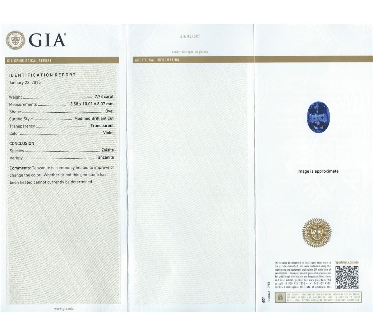 One electronically tested platinum ladies cast tanzanite and diamond ring with a bright polish finish. The featured tanzanite is set within a tiered diamond floret supported by diamond set shoulders, completed by a three millimeter wide band. Trademark is Orianne. Identified with markings of "950". Condition is new, good workmanship. Containing: One prong set oval modified brilliant cut natural tanzanite, measuring 13.58 x 10.01 x 8.07mm, exact weight 7.73ct., clarity is eye clean, type I, medium dark, moderately strong, violet color, (GIA V 6/4), cut is good. Transmitting light with no distortion, transparent. GIA Gemological Report attached. Graded loose prior to setting in the GIA Laboratory, Report #1166950081.Tanzanite is a very rare gemstone that is only found in the country of Tanzania. Originally discovered in 1967. Tiffany & Company, named the stone Tanzanite. It is found in the Usumburu Mountains that border the Umba Valley of northern Tanzania. Tanzanite occurs in gray, brown, violet, blue, reddish-purple, & green. The gem is interesting because of its exceptional pleochroism. Rotated in different directions a tanzanite will exhibit multiple changes of color. Tanzanite has a low tolerance to ultrasonic cleaning, and should not be cleaned using this method.Fifty-Eight prong set round brilliant cut diamonds approximate. Total Weight of 58 Stones = 2.13ct. Graded in the setting. Clarity: VS-1 to VS-2. Color: D - E. Total Weight of Colored Stones 7.73ct. Total Weight of Diamonds 2.13ct. Total Weight of Ring 11.81gm. AIG Appraised at $29,015.00.