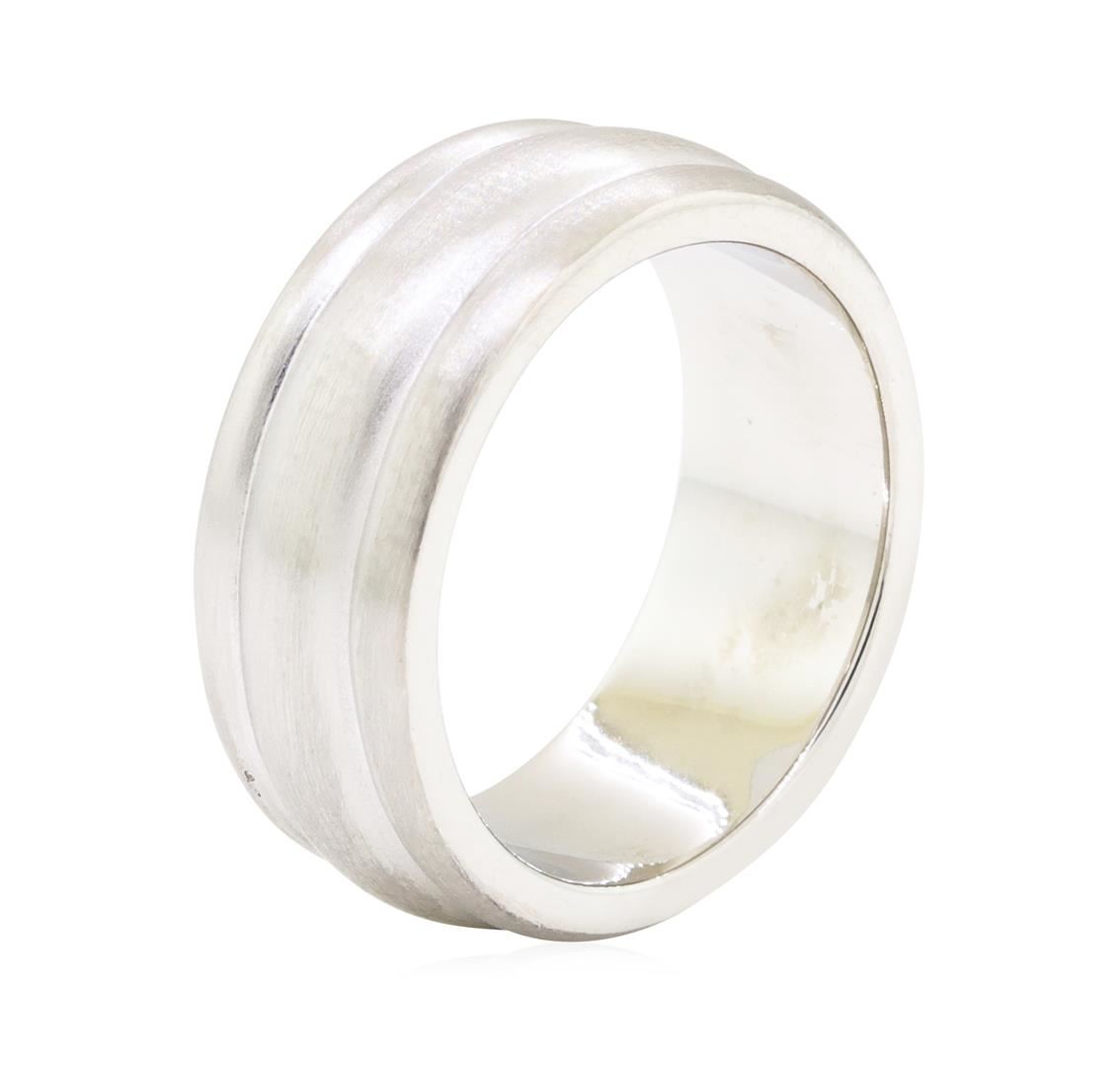 One wedding band featuring: platinum weighing 13.7 grams. The ring is a size 4.75.