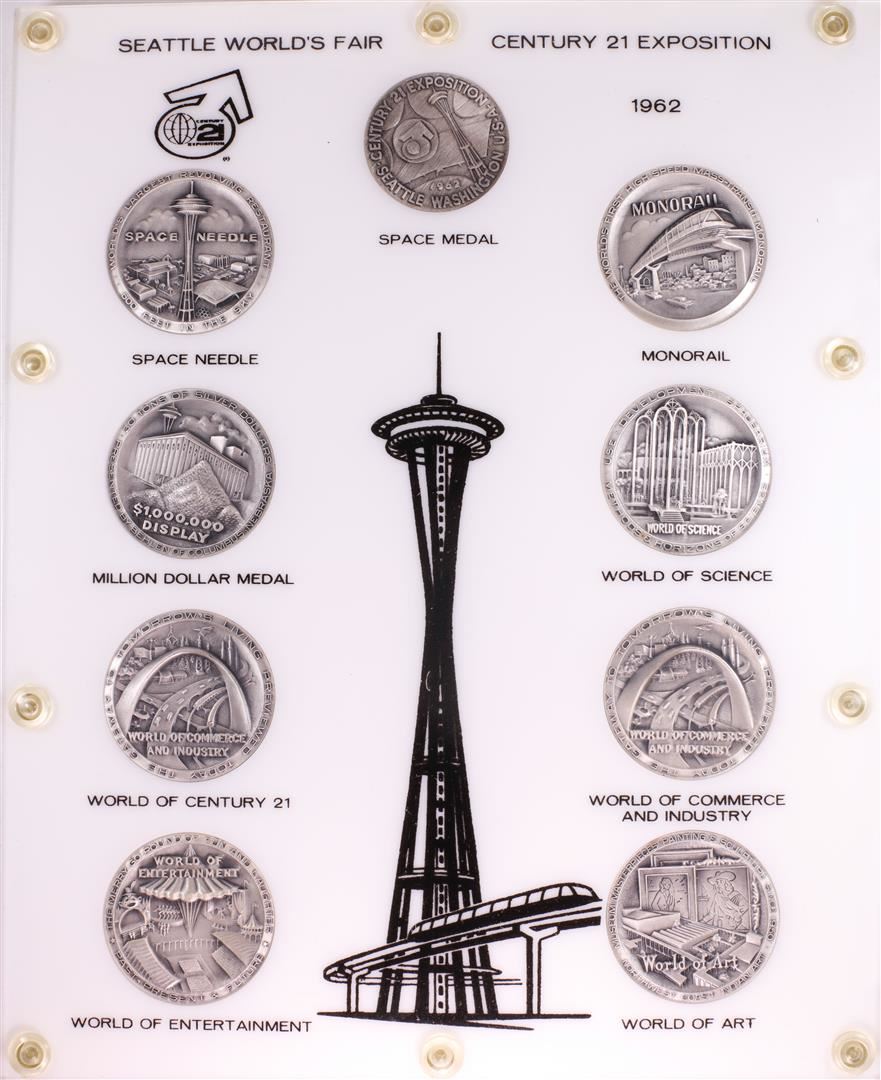 One Rare 1962 Seattle World's Fair .999 Fine Silver Medal Set w/ Capitol Holder and Book.