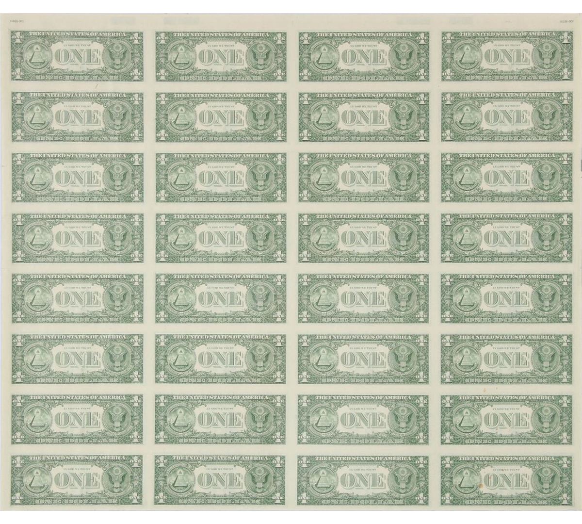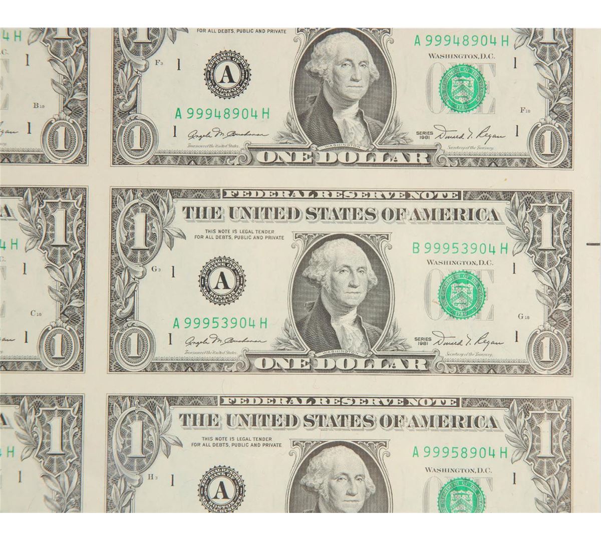 One Rare 1981 $1 Uncut Sheet with Mismatch Serial Error. This uncut choice uncirculated sheet contains 32 notes in total. The A/H Block Sheet in it's self is a tough block that usually brings a higher premium at auction. What makes this uncut sheet unusu