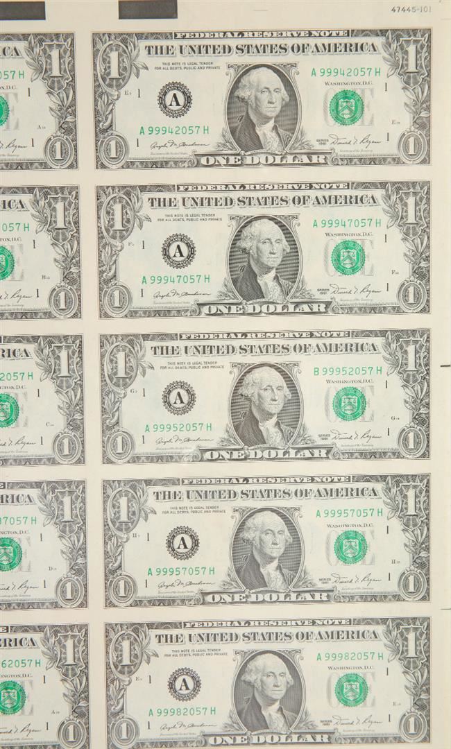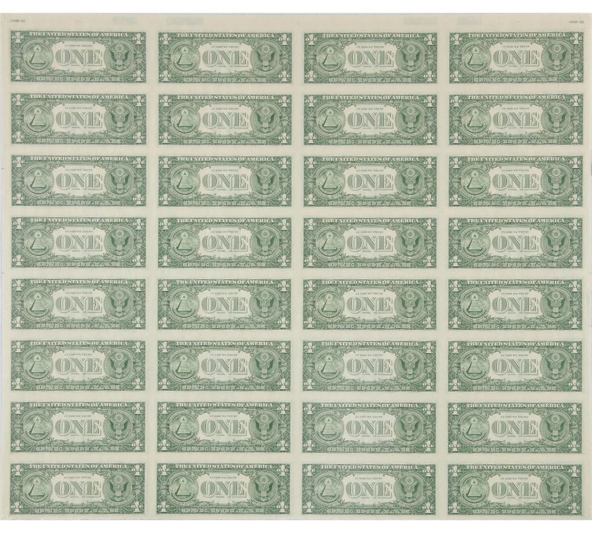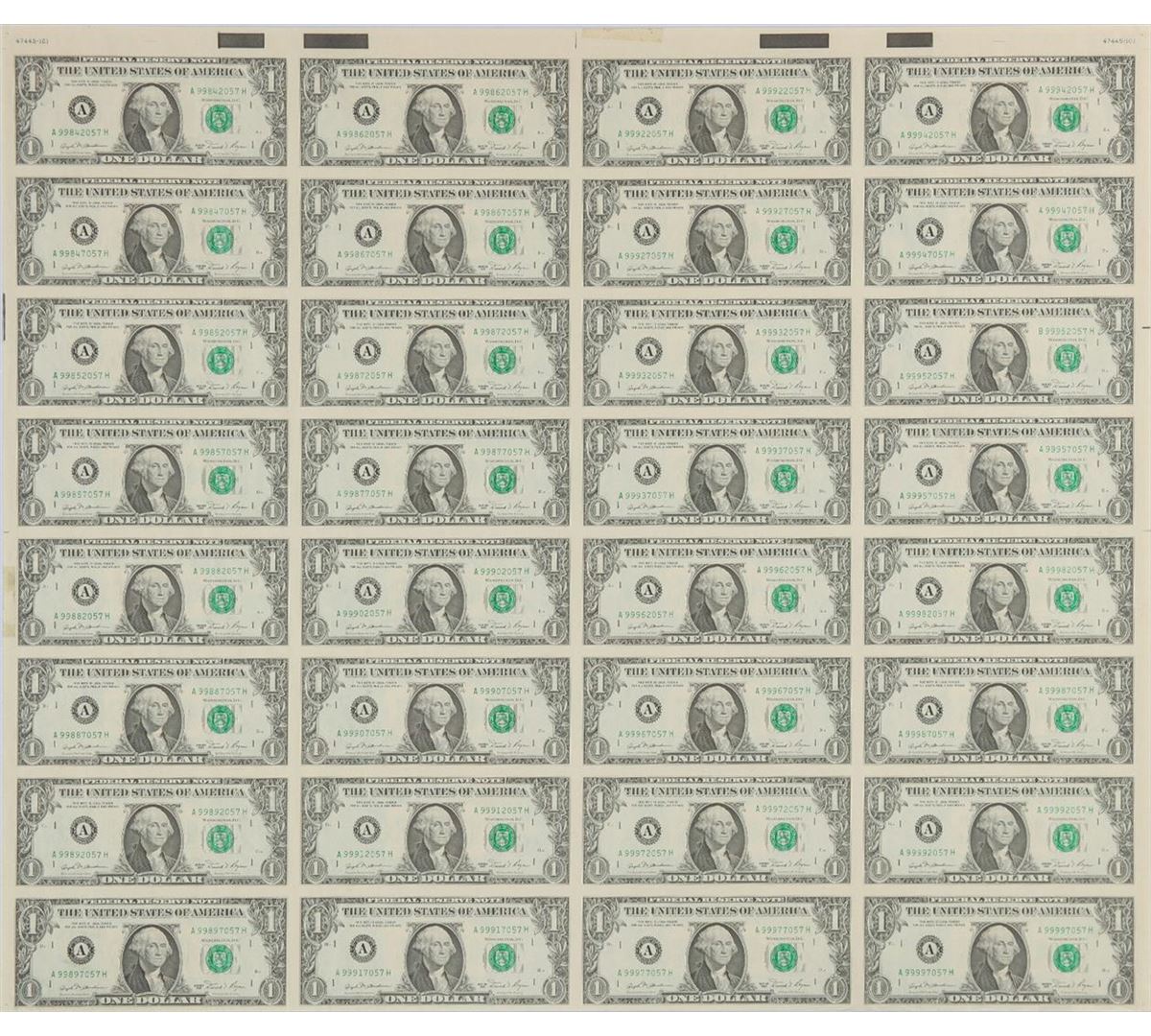 One Rare 1981 $1 Uncut Sheet with Mismatch Serial Error. This uncut choice uncirculated sheet contains 32 notes in total. The A/H Block Sheet in it's self is a tough block that usually brings a higher premium at auction. What makes this uncut sheet unusu