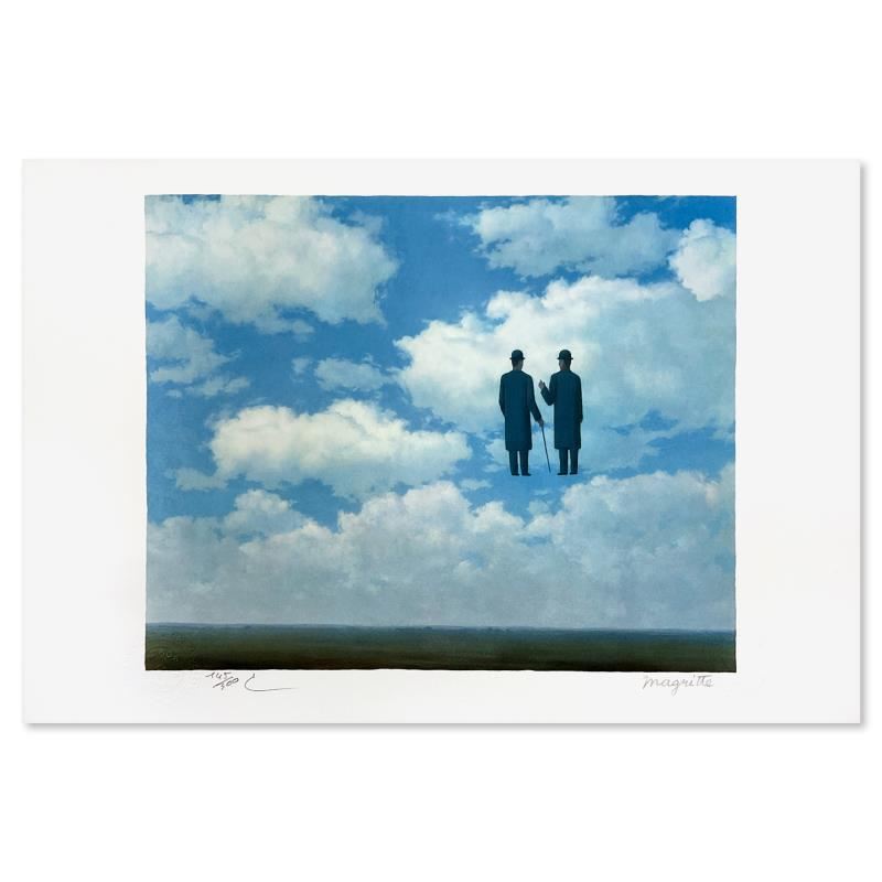 "La Reconnaissance Infinie" is a limited edition lithograph by Rene Magritte (1898-1967). This piece is numbered 145/300 and bears the dry stamps of the Magritte Foundation & ADAGP (Society of Authors in the Graphic and Plastic Arts) and is signed by the