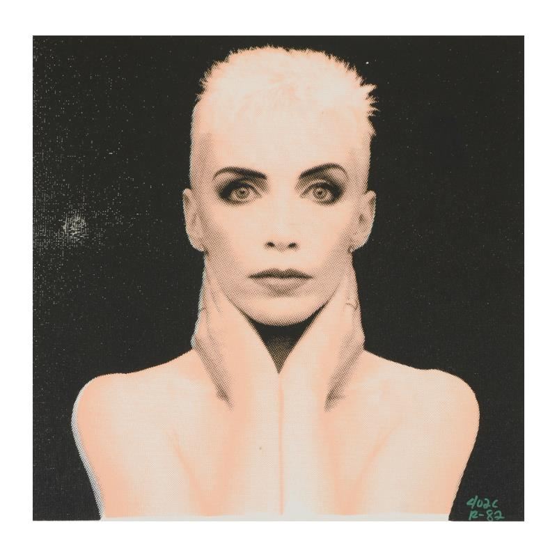 "Annie Lennox" is a one-of-a-kind hand-pulled silkscreen on canvas by Ringo (Daniel Funes) - protege of Andy Warhol's apprentice, Steve Kaufman. This piece is hand signed by the artist and Includes Certificate of Authenticity. This piece comes from the Andy Warhol Legacy Series. Due to the nature of the canvas these, pieces will need to be mounted for framing. Also, the signature is offset to the right of the image in the white border area. Measures approx. 16" x 16" (image).