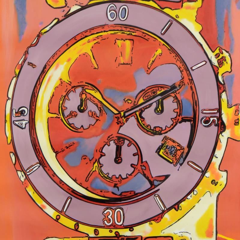 "Luxury Watch for Her" is a hand-painted one-of-a-kind mixed media on canvas by Ringo (Daniel Funes) - protege of Andy Warhol's apprentice, Steve Kaufman. This piece is hand signed by the artist and Includes Certificate of Authenticity. Measures approx. 32" x 40" (image).