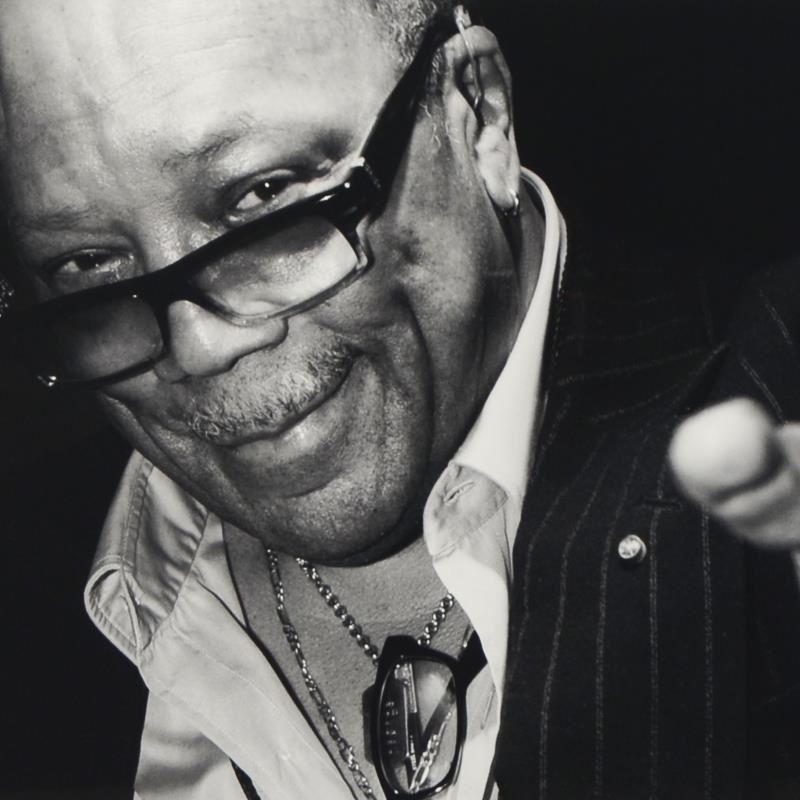 "Quincy Jones" is a limited edition giclee on paper, numbered and hand signed by acclaimed music industry photographer Rob Shanahan. Includes Certificate of Authenticity. Measures approximately 22" x 14.5" (image).