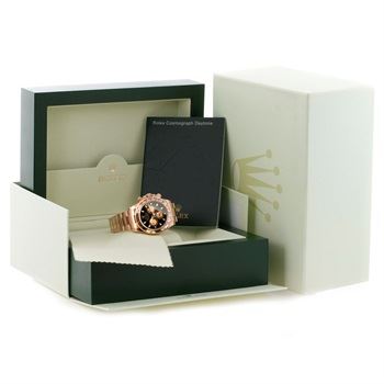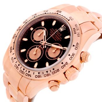 One Rolex Cosmograph Daytona 18K Rose Gold Chronograph Watch. The watch is in excellent condition and the details are as follows: Model Number: 116505, Movement: Officially certified chronometer 44 Jewels self-winding movement, Caliber: 4130, Case: 18K rose gold case 40.0 mm in diameter, Special screw-down push buttons, Screw-down case back, Chronograph pushers and crown with guards, Bezel: 18K rose gold bezel calibrated for 400 units, Crystal: Scratch resistant sapphire crystal, Dial: Black dial with luminous hands and hour markers, 3 engine turned subdials for 12-hour and 30-minute registers, and constant seconds, Outer minute and 1/5 seconds divisions, Bracelet: 18K rose gold oyster bracelet with flip-lock clasp.
