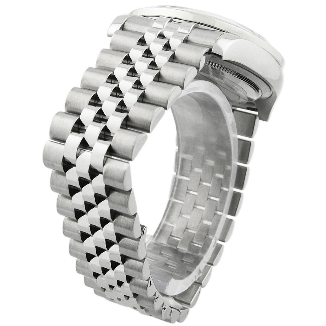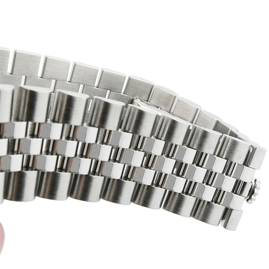 Rolex Unisex Datejust Stainless Steel 36mm Black Roman Diamond Dial Watch Polished & Electronically Tested. Model: Datejust. Case: Stainless Steel. Bezel: Custom made diamond bezel with round brilliant diamonds all set in prong setting. Total Diamond Weight: 0.90ctw. Clarity: VS-SI Color: G-H. Crystal: Sapphire Crystal. Bracelet: Stainless Steel. Dial: Black Roman Diamond Dial. Date Window: 3 O'clock Position. Movement: Automatic Winding Movement. Water Resistant: Yes. Case Size: 36mm. Condition: Pre Owned, Watch is free of all Scratches and Dents, Extra Fine G-6.