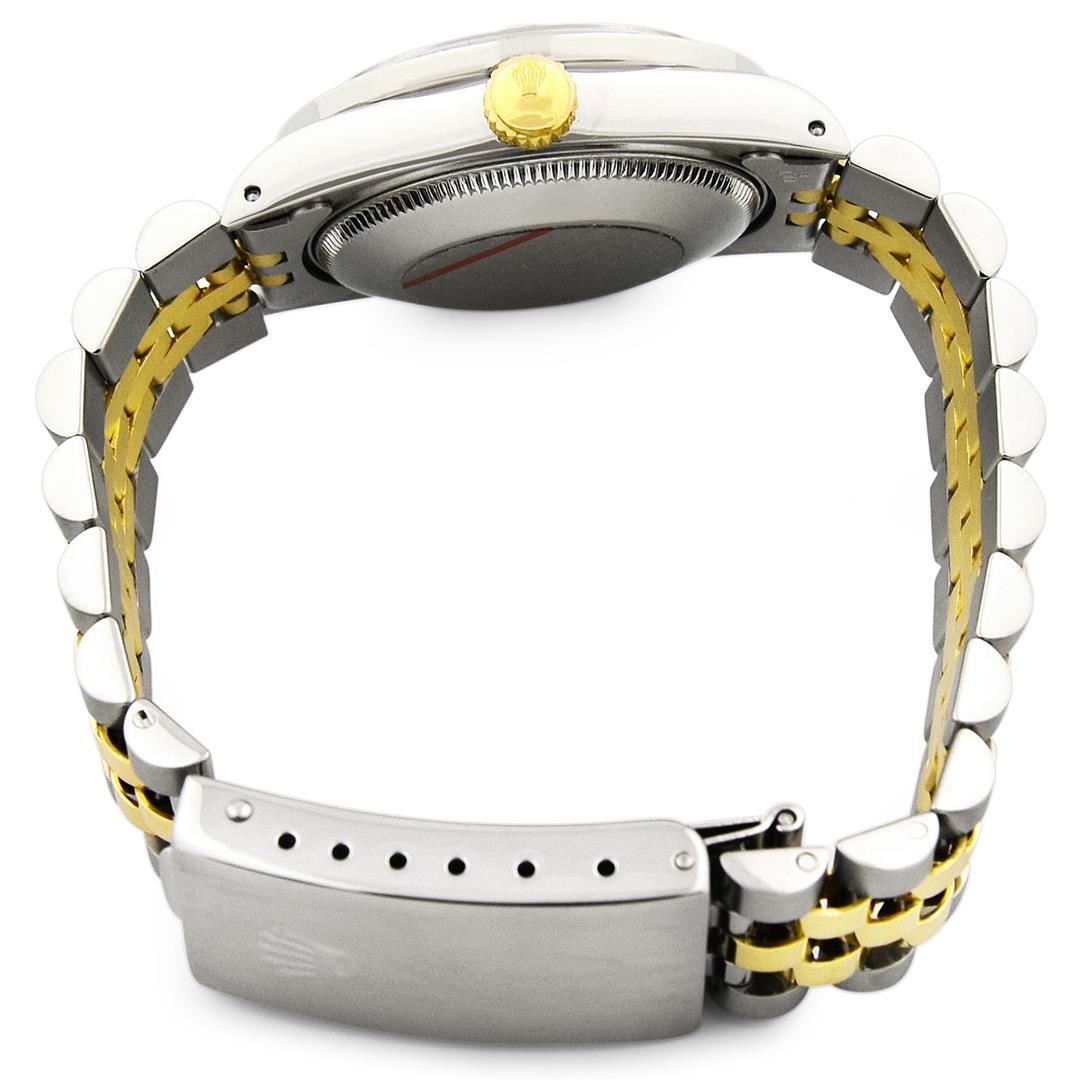 Rolex Lady Datejust 18KT Yellow Gold & Stainless Steel 31mm Silver Roman Diamond Dial Watch Polished & Electronically Tested. Model: Datejust. Case: 18KT Yellow Gold & Stainless Steel. Bezel: Custom made diamond bezel with round brilliant diamonds all set in prong setting. Total Diamond Weight: 0.85ctw. Clarity: VS-SI Color: G-H. Crystal: Sapphire Crystal. Bracelet: 18KT Yellow Gold & Stainless Steel, Adjustable Standard Clasp with Rolex Logo. Dial: Silver Roman Diamond Dial. Date Window: 3 O'clock Position. Movement: Automatic Winding Movement. Water Resistant: Yes. Case Size: 31mm. Condition: Pre Owned, Watch is free of all Scratches and Dents, Extra Fine G-6.