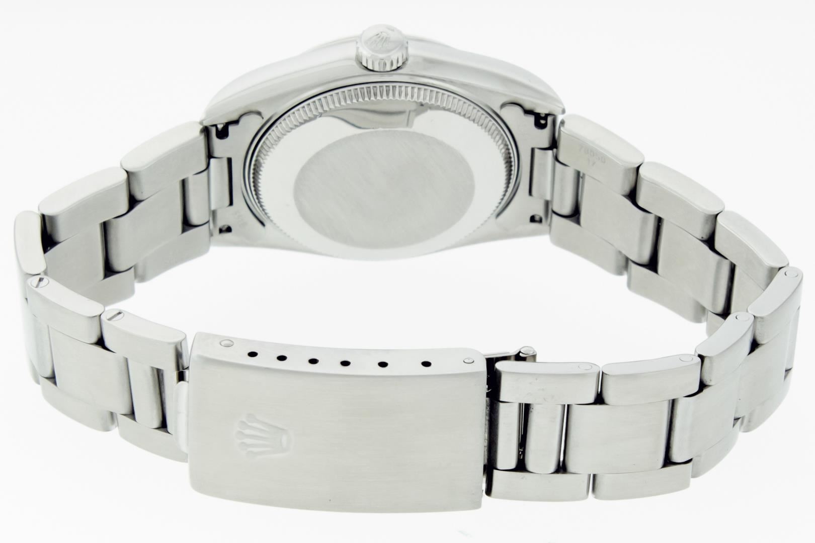 One Women's Rolex Midsize Stainless Steel Datejust Polished, Serviced & Electronically Tested, Rolex Stainless Steel Case : 31mm, Rolex Stainless Steel Crown, Rolex Bezel: Stainless Steel Smooth Bezel, Crystal: Sapphire With Cyclops Lens. Hands: Lumi Hands. Rolex Movement: Automatic Winding Movement 2235. Rolex Dial: Factory Salmon Arabic Dial With Index Hour Markers And Dash Track. Date Window: 3 O'Clock Position Date Display, Quickset, Model: Midsize Quickset Datejust. Condition: G-6 Extra Fine. Rolex Bracelet: Stainless Steel Oyster Band. Bright Polish. 6.0 Inch Length, Adjustable. Standard Clasp, With Rolex Logo. This Pre Owned Watch Has Been Serviced Time Tested And Is In Excellent Condition It Is Free Of All Scratches And Dents.