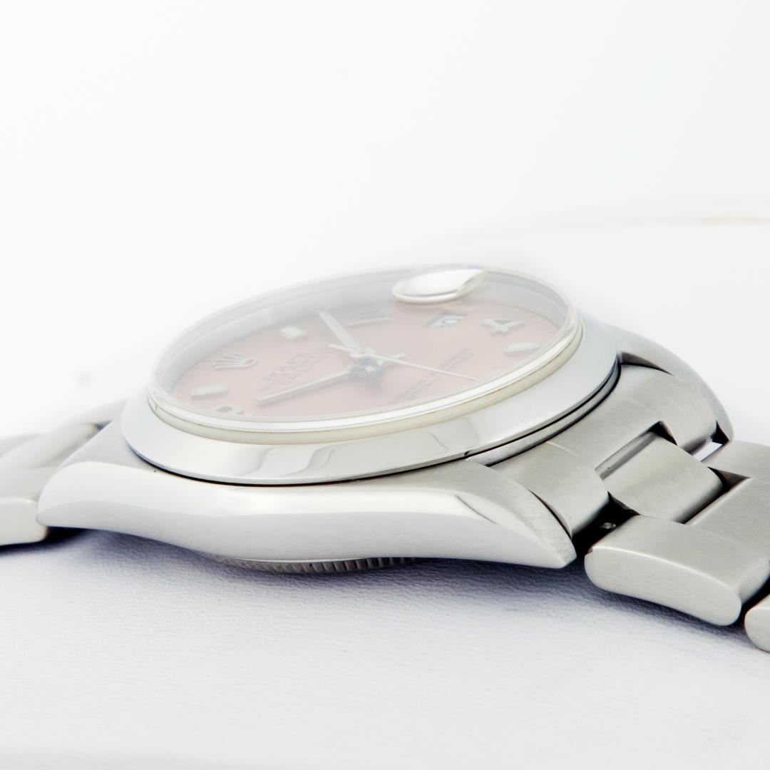 One Women's Rolex Midsize Stainless Steel Datejust Polished, Serviced & Electronically Tested, Rolex Stainless Steel Case : 31mm, Rolex Stainless Steel Crown, Rolex Bezel: Stainless Steel Smooth Bezel, Crystal: Sapphire With Cyclops Lens. Hands: Lumi Hands. Rolex Movement: Automatic Winding Movement 2235. Rolex Dial: Factory Salmon Arabic Dial With Index Hour Markers And Dash Track. Date Window: 3 O'Clock Position Date Display, Quickset, Model: Midsize Quickset Datejust. Condition: G-6 Extra Fine. Rolex Bracelet: Stainless Steel Oyster Band. Bright Polish. 6.0 Inch Length, Adjustable. Standard Clasp, With Rolex Logo. This Pre Owned Watch Has Been Serviced Time Tested And Is In Excellent Condition It Is Free Of All Scratches And Dents.