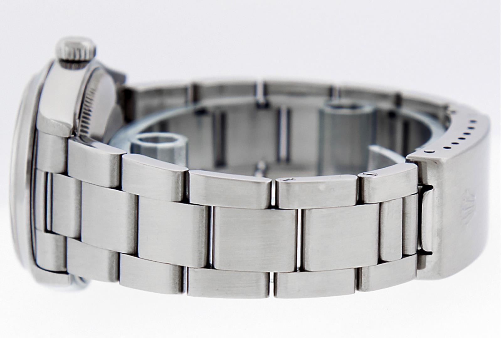 One Women's Midsize Rolex Stainless Steel Datejust Polished, Serviced & Electronically Tested, Rolex Stainless Steel Case : 31mm, Rolex Stainless Steel Crown, Rolex Bezel: Stainless Steel Smooth Bezel, Crystal: Sapphire With Magnified Date Window. Hands: Solid Hands. Rolex Movement: Automatic Winding Movement Caliber 2135. Rolex Dial: Salmon Roman Dial With Square Track. Date Window: 3 O'Clock Position Date Display, Quickset, Model: Quickset Midsize Datejust. Condition: G-6 Extra Fine. Rolex Bracelet: Stainless Steel Oyster Band. Bright Polish. 6.0 Inch Length, Adjustable. Standard Clasp, With Rolex Logo. This Pre Owned Watch Has Been Serviced Time Tested And Is In Excellent Condition It Is Free Of All Scratches And Dents.