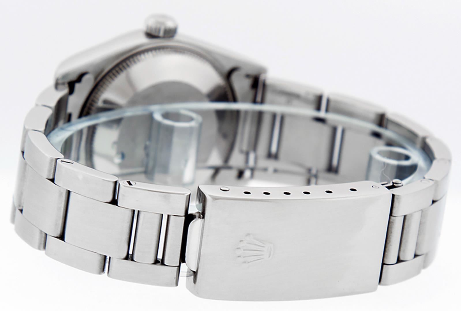 One Women's Midsize Rolex Stainless Steel Datejust Polished, Serviced & Electronically Tested, Rolex Stainless Steel Case : 31mm, Rolex Stainless Steel Crown, Rolex Bezel: Stainless Steel Smooth Bezel, Crystal: Sapphire With Magnified Date Window. Hands: Solid Hands. Rolex Movement: Automatic Winding Movement Caliber 2135. Rolex Dial: Salmon Roman Dial With Square Track. Date Window: 3 O'Clock Position Date Display, Quickset, Model: Quickset Midsize Datejust. Condition: G-6 Extra Fine. Rolex Bracelet: Stainless Steel Oyster Band. Bright Polish. 6.0 Inch Length, Adjustable. Standard Clasp, With Rolex Logo. This Pre Owned Watch Has Been Serviced Time Tested And Is In Excellent Condition It Is Free Of All Scratches And Dents.