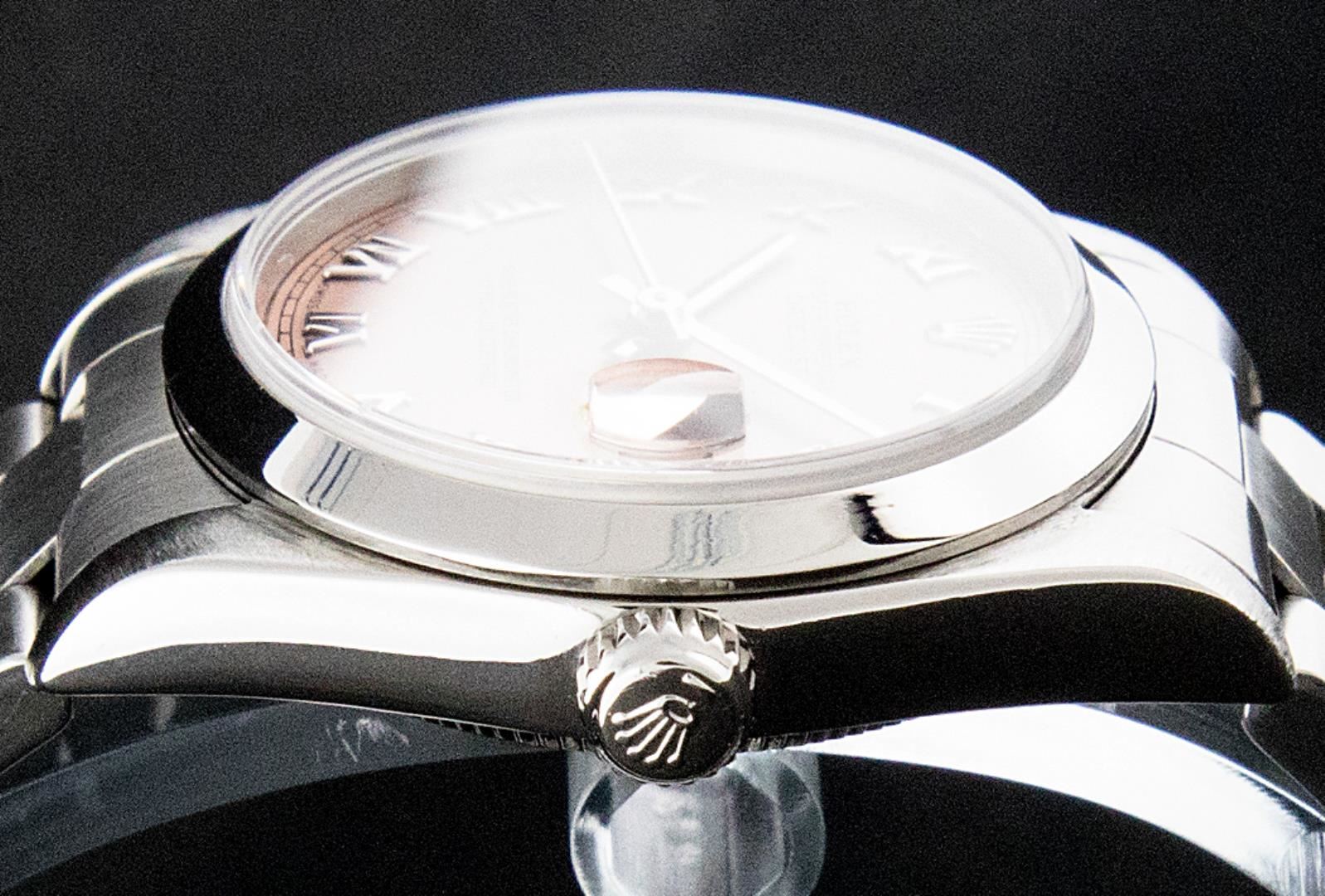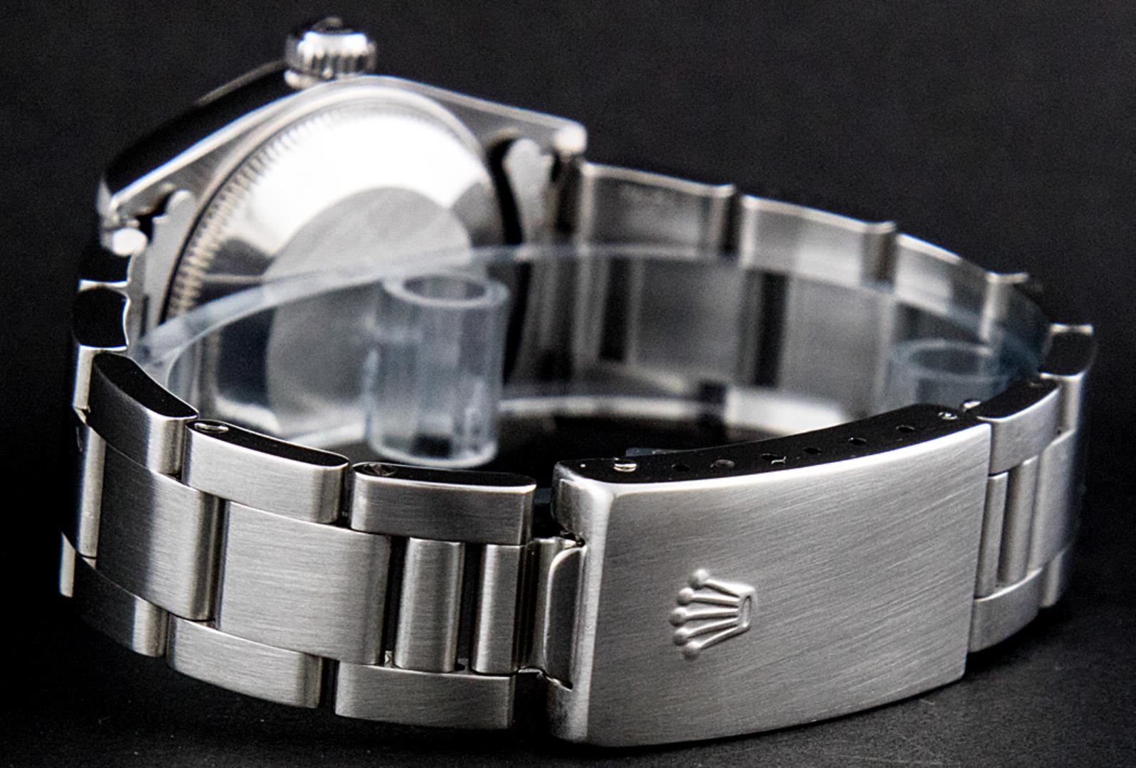 One Women's Midsize Rolex Stainless Steel Datejust Polished, Serviced & Electronically Tested, Rolex Stainless Steel Case : 31mm, Rolex Stainless Steel Crown, Rolex Bezel: Stainless Steel Smooth Bezel, Crystal: Sapphire With Magnified Date Window. Hands: Solid Hands. Rolex Movement: Automatic Winding Movement Caliber 2135. Rolex Dial: Salmon Roman Dial With Square Track. Date Window: 3 O'Clock Position Date Display, Quickset, Model: Quickset Midsize Datejust. Condition: G-6 Extra Fine. Rolex Bracelet: Stainless Steel Oyster Band. Bright Polish. 6.0 Inch Length, Adjustable. Standard Clasp, With Rolex Logo. This Pre Owned Watch Has Been Serviced Time Tested And Is In Excellent Condition It Is Free Of All Scratches And Dents.