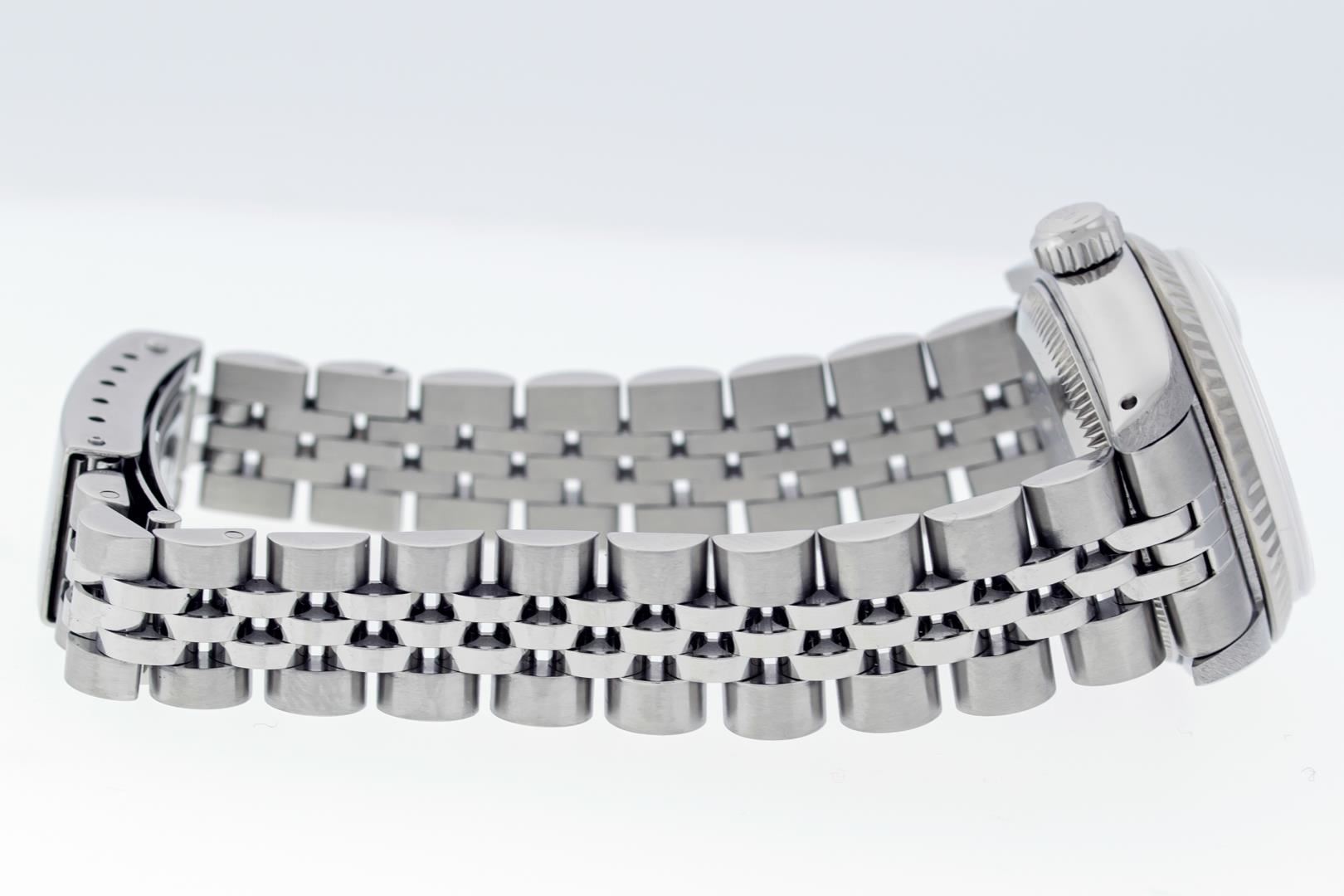 One Ladies Quickset Pre Owned Stainless Steel Rolex Datejust Polished Bright with Satin Finish, Serviced & Electronically Tested, Rolex Stainless Steel Case: 26mm, Rolex Stainless Steel Crown, Rolex Bezel: 18K White Gold Fluted Bezel, Custom Crystal: New With Magnifying Date Window. Rolex Hands: Luminescent Hands. Rolex Movement: Automatic Winding Movement. Rolex Dial: Silver Dial With Index Hour Markers And Lumi Dots. Date Window: 3 O'Clock Position Date Display, Model: Datejust. Condition: G-6 Extra Fine. Rolex Bracelet: Stainless Steel Jubilee Band. Bright Polish & Satin Finish. 6.0 Inch Length, Adjustable. Standard Clasp, With Rolex Logo. This Watch Has Been Serviced Time Tested And Is In Excellent Condition It Is Free Of All Scratches And Dents. This Watch Comes With A Rolex Box And Booklets.