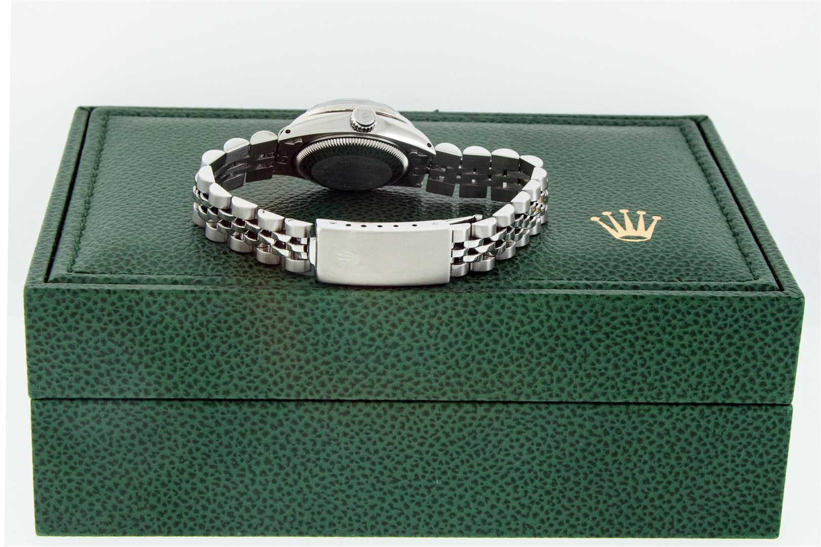 One Ladies Stainless Steel Rolex Datejust Polished Bright with Satin Finish, Serviced & Electronically Tested, Rolex Stainless Steel Case: 26mm, Rolex Stainless Steel Crown, Custom Bezel: New 18K White Gold Emerald Beadset Diamond Bezel, Diamond + Gem Count: 28 Diamonds + 4 Emeralds. Total Weight .70 Carat, Clarity: SI-VS, Color: G to H. Custom Crystal: New Sapphire With Magnified Date Window. Custom Hands: New Luminescent Hands. Rolex Movement: Automatic Winding Movement. Custom Dial: Mother Of Pearl With Diamond Hour Markers, 10 Diamond in Dial G To H In Color, Clarity: SI-VS. Date Window: 3 O'clock Position Date Display, Model: Datejust. Condition: G-6 Extra Fine. Rolex Bracelet: Stainless Steel Jubilee Band. Bright Polish & Satin Finish. 6.0 Inch Length, Adjustable. Standard Clasp, With Rolex Logo. This Pre Owned Watch Has Been Serviced Time Tested And Is In Excellent Condition It Is Free Of All Scratches And Dents. This Watch Comes With A Rolex Box.