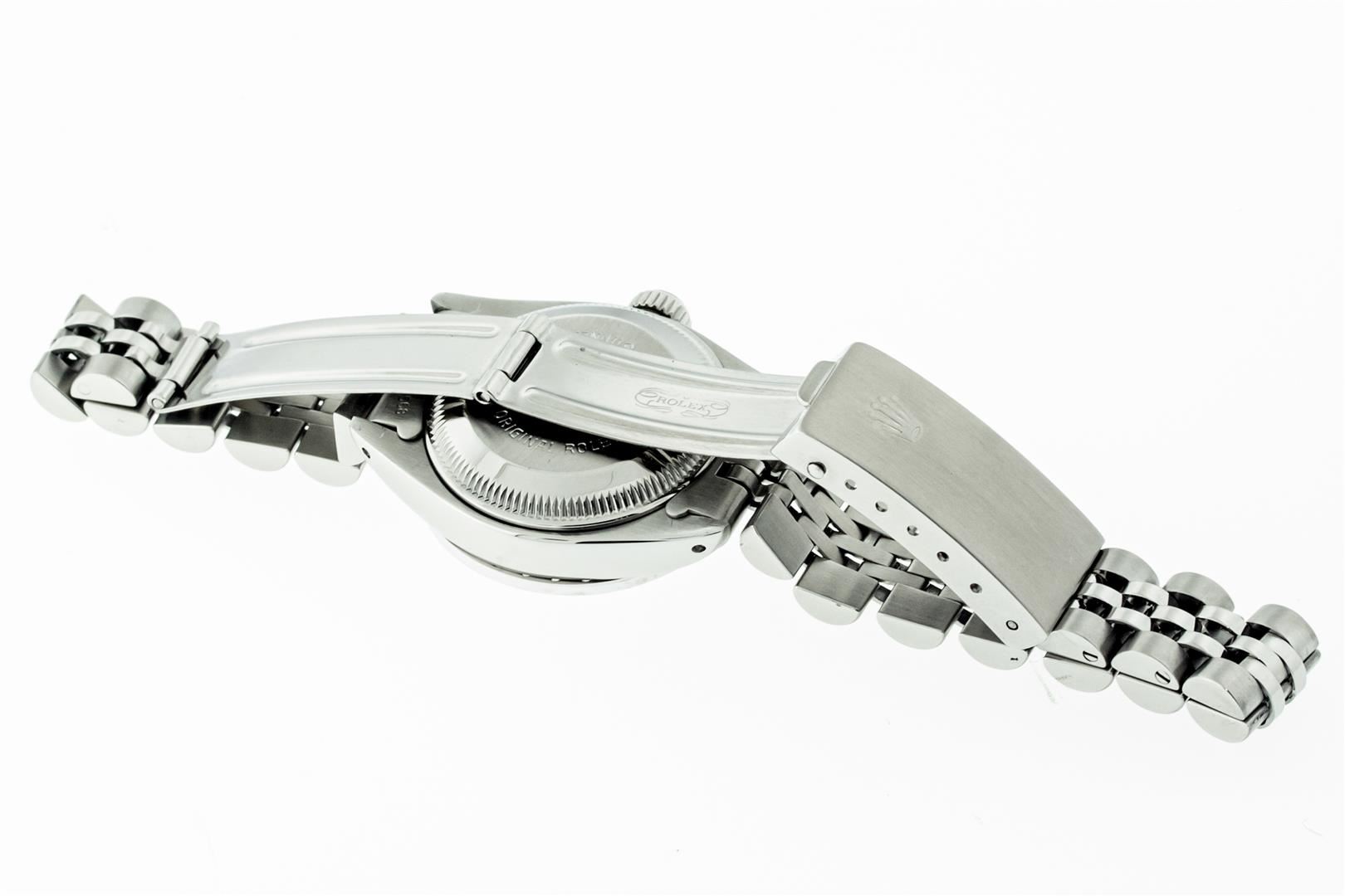 One Ladies Stainless Steel Rolex Datejust Polished Bright with Satin Finish, Serviced & Electronically Tested, Rolex Stainless Steel Case: 26mm, Rolex Stainless Steel Crown, Custom Bezel: New 18K White Gold Beadset Diamond Bezel, Diamond Count: 32 Diamonds, Total Weight .70 Carat, Clarity: SI-VS, Color: G to H. Custom Crystal: New Sapphire With Magnified Date Window. Custom Hands: New Luminescent Hands. Rolex Movement: Automatic Winding Movement. Custom Dial: Refinished To Pink With Custom Added Diamonds, Diamond Count: 10 Diamonds In Dial, Color: G To H, Clarity: SI-VS. Date Window: 3 O'clock Position Date Display, Model: Datejust. Condition: G-6 Extra Fine. Rolex Bracelet: Stainless Steel Jubilee Band. Bright Polish & Satin Finish. 6.0 Inch Length, Adjustable. Standard Clasp, With Rolex Logo. This Pre Owned Watch Has Been Serviced Time Tested And Is In Excellent Condition It Is Free Of All Scratches And Dents.