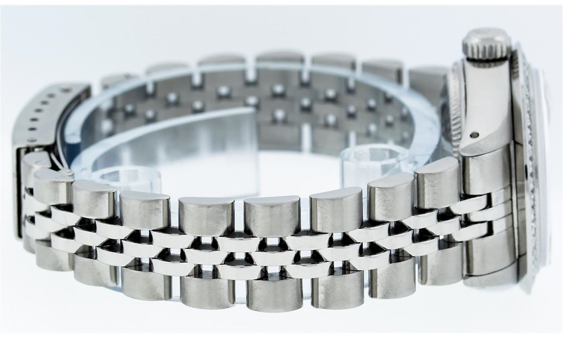 One Ladies Stainless Steel Rolex Datejust Polished Bright with Satin Finish, Serviced & Electronically Tested, Stainless Steel Case: 26mm, Stainless Steel Crown, Custom Bezel: New Stainless Steel Beadset Diamond Bezel, Diamond Count: 44 Diamonds Total Wei
