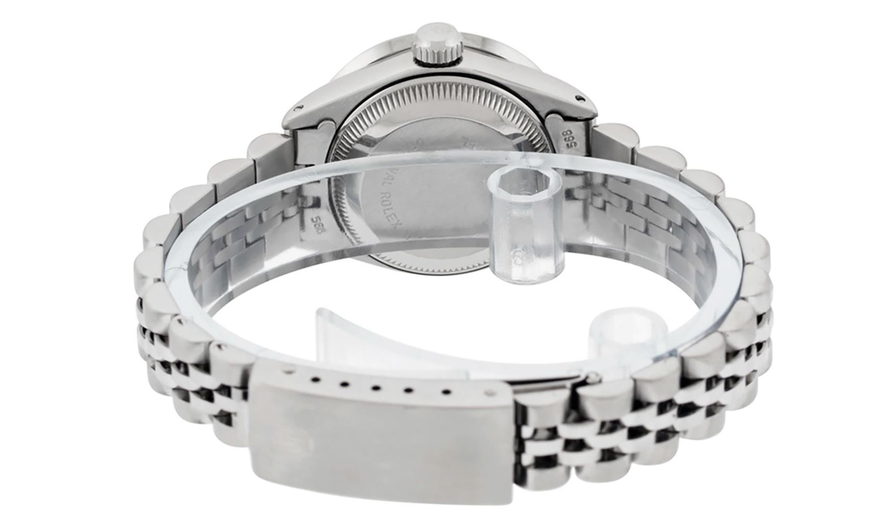 Rolex Ladies Stainless Steel Rolex Datejust Polished Bright with Satin Finish, Serviced & Electronically Tested, Stainless Steel Case: 26mm, Stainless Steel Crown, Custom Bezel: New Stainless Steel Beadset Diamond Bezel, Diamond Count: 44 Diamonds Total Weight 1.00 Carat, Clarity: SI-VS, Color: G to H. Custom Crystal: New Synthetic Sapphire Cyclops Lens. Custom Hands: New Luminescent Hands. Movement: Automatic Winding Movement. Custom Dial: Refinished Pink Mother Of Pearl With Diamond Hour Markers, Diamond Count: 10 Diamonds in Dial G To H In Color, Clarity: SI-VS. Date Window: 3 O'Clock Position Date Display, Model: Datejust. Condition: G-6 Extra Fine. Bracelet: Stainless Steel Jubilee Band. Bright Polish & Satin Finish. 6.0 Inch Length, Adjustable. Standard Clasp, With Rolex Logo. This Watch Has Been Serviced Time Tested And Is In Excellent Condition It Is Free Of All Scratches And Dents.