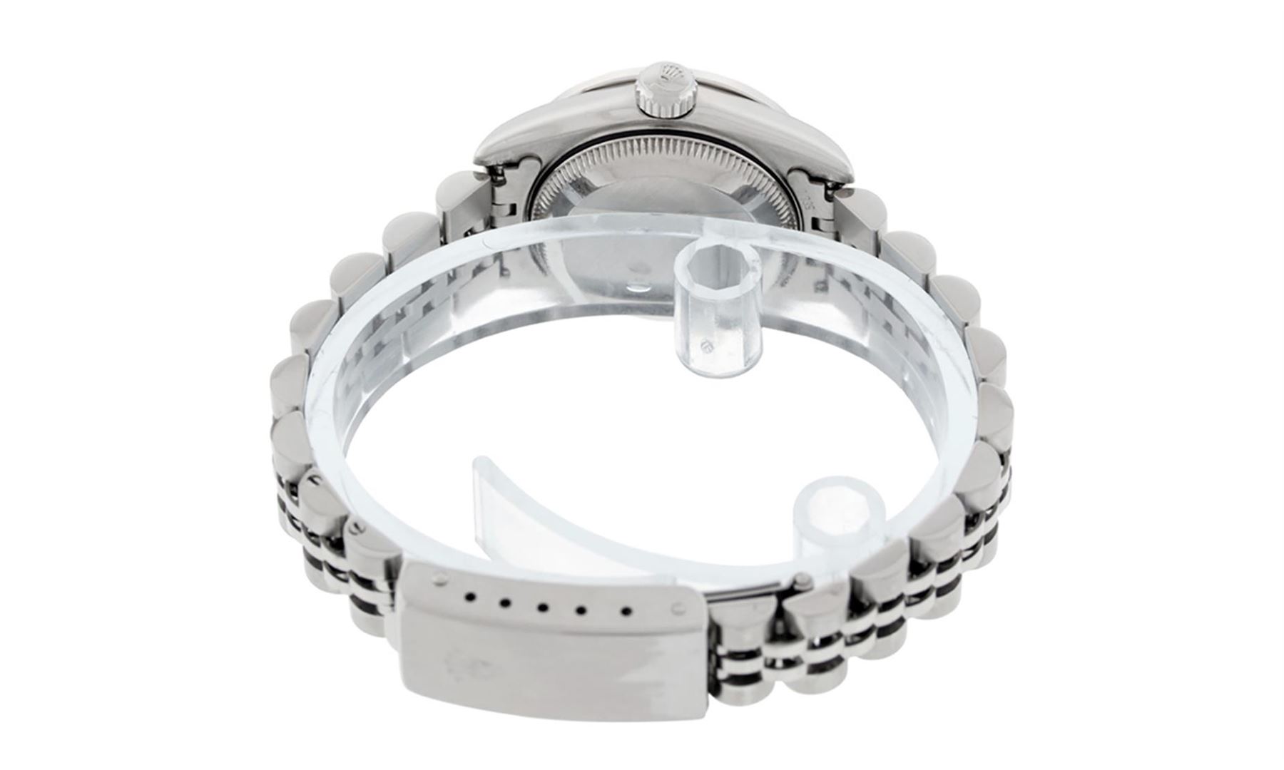 One Quickset Ladies Stainless Steel Rolex Datejust Polished Bright with Satin Finish, Serviced & Electronically Tested, Stainless Steel Case: 26mm, Stainless Steel Crown, Custom Bezel: New 18K White Gold Diamond + Emerald Beadset Diamond Bezel, Stone Count: 28 Diamonds + 4 Emeralds, Total Weight .70 Carat, Clarity: SI-VS, Color: G to H. Custom Crystal: New Scratch Resistant Synthetic Sapphire Cyclops Lens. Custom Hands: New Luminescent Hands. Movement: Automatic Winding Movement Caliber 2235. Custom Dial: Refinished Green Diamond Dial, 10 Diamonds in Dial G To H In Color, Clarity: VS. Date Window: 3 O'Clock Position Date Display, Model: Quickset Datejust. Condition: G-6 Extra Fine. Bracelet: Stainless Steel Jubilee Band. Bright Polish & Satin Finish. 6.0 Inch Length, Adjustable. Standard Clasp, With Rolex Logo. This Watch Has Been Serviced Time Tested And Is In Excellent Condition It Is Free Of All Scratches And Dents.