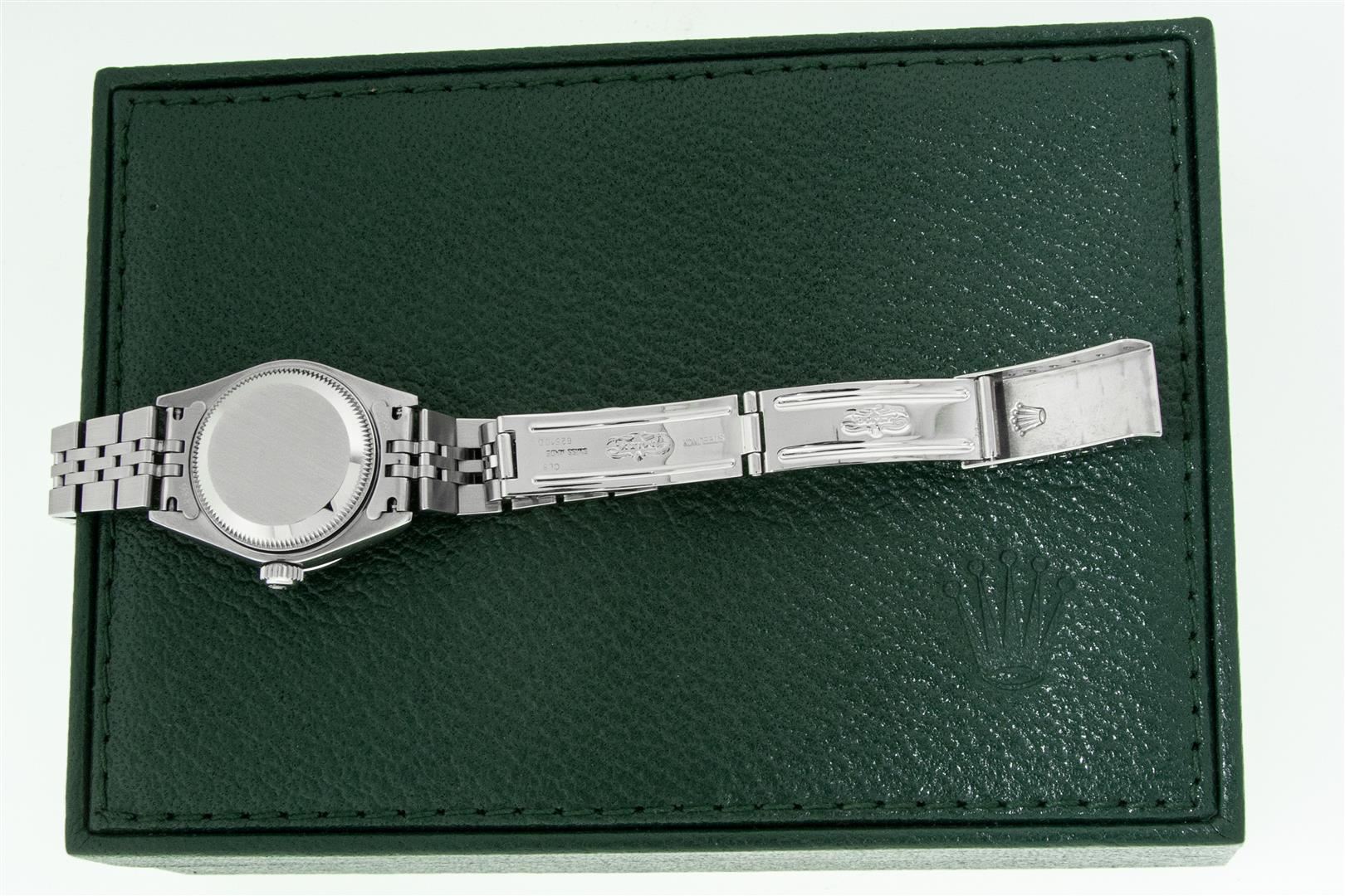 One Quickset Ladies Stainless Steel Rolex Datejust Polished Bright with Satin Finish, Serviced & Electronically Tested, Rolex Stainless Steel Case: 26mm, Rolex Stainless Steel Crown, Custom Diamond Lugs: 24 Diamonds On Lugs, Clarity: SI-VS, Color: G to H. Custom Bezel: New 18K White Gold Beadset Diamond Bezel, Stone Count: 32 Diamonds On Bezel, Total Weight .70 Carat, Clarity: SI-VS, Color: G to H. Custom Crystal: New Sapphire With Magnified Date Window. Custom Hands: New Luminescent Hands. Rolex Movement: Automatic Quickset Winding Movement Caliber 2230. Custom Dial: Refinished To Salmon With Custom Added Diamond Hour Markers, 43 Diamonds in Dial G To H In Color, Clarity: VS. Date Window: 3 O'clock Position Date Display, Model: Caliber 2230 Quickset Datejust. Condition: G-6 Extra Fine. Rolex Bracelet: Stainless Steel Jubilee Band. Bright Polish & Satin Finish. 6.0 Inch Length, Adjustable. Standard Clasp, With Rolex Logo. This Pre Owned Watch Has Been Serviced Time Tested And Is In Excellent Condition It Is Free Of All Scratches And Dents. This Watch Comes With A Rolex Box.