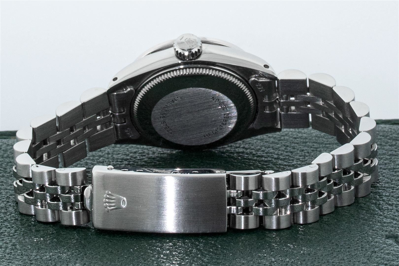 One Ladies Stainless Steel Rolex Datejust Polished Bright with Satin Finish, Serviced & Electronically Tested, Rolex Stainless Steel Case: 26mm, Rolex Stainless Steel Crown. Custom Diamond Lugs: 24 Custom Added Diamonds On Lugs, Clarity: SI-VS, Color: G to H. Custom Bezel: New 18K White Gold Beadset & Ruby Diamond Bezel, Custom Diamond Count: 28 Diamonds + 4 Rubies. Total Weight .70 Carat, Clarity: SI-VS, Color: G to H. Custom Crystal: New Sapphire With Magnified Date Window. Custom Hands: New Luminescent Hands. Rolex Movement: Automatic Winding Movement. Custom Dial: Refinished To Red With Custom Added Diamonds, Stone Count: 43 Diamonds On Dial, G To H In Color, Clarity: SI-VS. Date Window: 3 O'clock Position Date Display, Model: Datejust. Condition: G-6 Extra Fine. Rolex Bracelet: Stainless Steel Jubilee Band. Bright Polish & Satin Finish. 6.0 Inch Length, Adjustable. Standard Clasp, With Rolex Logo. This Pre Owned Watch Has Been Serviced Time Tested And Is In Excellent Condition It Is Free Of All Scratches And Dents. This Watch Comes With A Rolex Box.