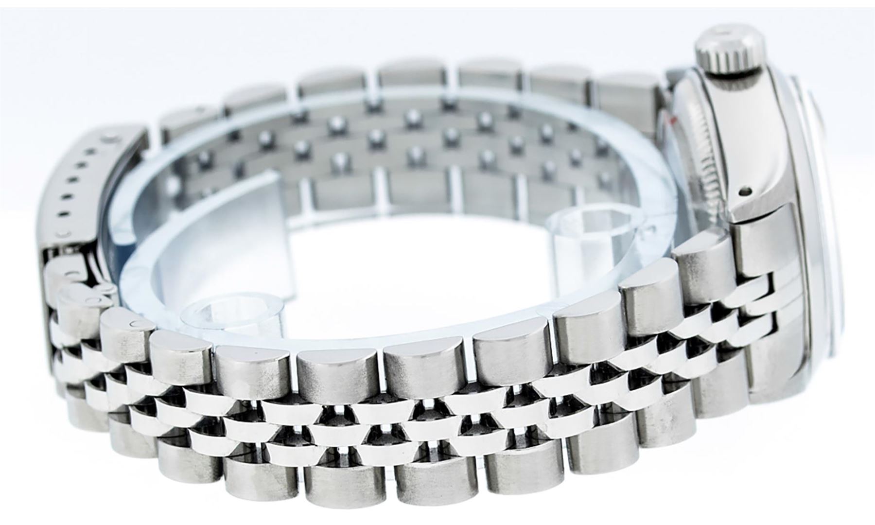 One Ladies Pre Owned Stainless Steel Rolex Polished Bright with Satin Finish, Serviced & Electronically Tested, Rolex Stainless Steel Case: 26mm, Rolex Stainless Steel Crown, Rolex Bezel: Stainless Steel Smooth Bezel. Custom Crystal: New With Cyclops Lens. Custom Hands: New Luminescent Hands. Rolex Movement: Automatic Winding Movement. Dial: Salmon Arabic Dial With Dash Track, Date Window: 3 O'Clock Position Date Display, Model: Datejust. Condition: G-6 Extra Fine. Rolex Bracelet: Stainless Steel Jubilee Band. Bright Polish & Satin Finish. 6.0 Inch Length, Adjustable. Standard Clasp, With Rolex Logo. This Watch Has Been Serviced Time Tested And Is In Excellent Condition It Is Free Of All Scratches And Dents.