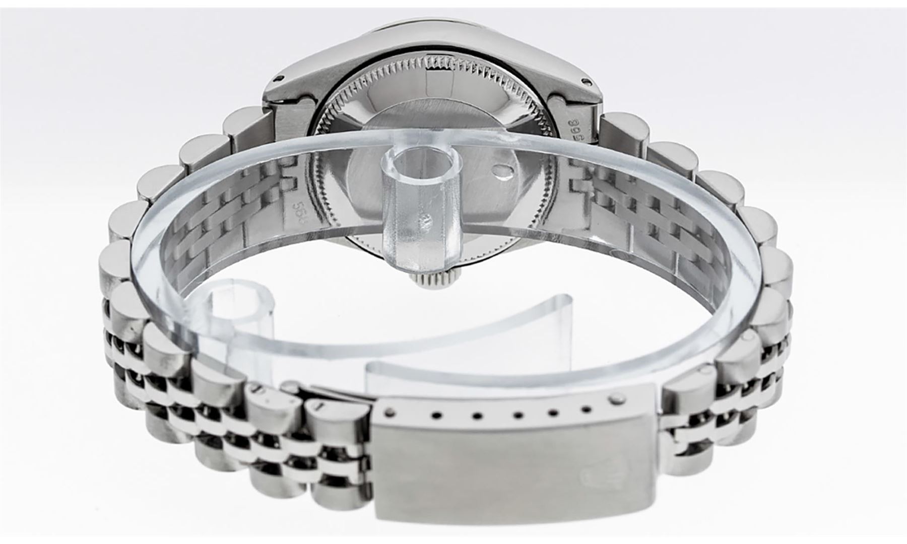 One Ladies Pre Owned Stainless Steel Rolex Polished Bright with Satin Finish, Serviced & Electronically Tested, Rolex Stainless Steel Case: 26mm, Rolex Stainless Steel Crown, Rolex Bezel: Stainless Steel Smooth Bezel. Custom Crystal: New With Cyclops Lens. Custom Hands: New Luminescent Hands. Rolex Movement: Automatic Winding Movement. Dial: Salmon Arabic Dial With Dash Track, Date Window: 3 O'Clock Position Date Display, Model: Datejust. Condition: G-6 Extra Fine. Rolex Bracelet: Stainless Steel Jubilee Band. Bright Polish & Satin Finish. 6.0 Inch Length, Adjustable. Standard Clasp, With Rolex Logo. This Watch Has Been Serviced Time Tested And Is In Excellent Condition It Is Free Of All Scratches And Dents.