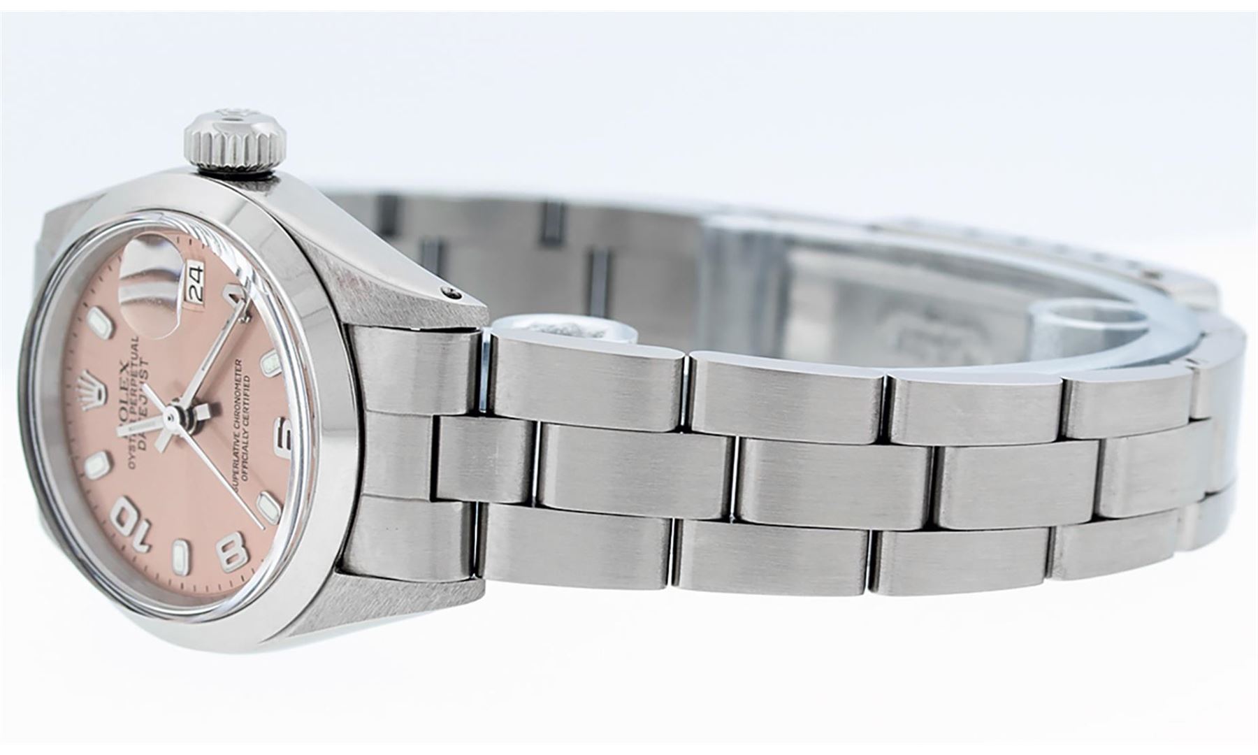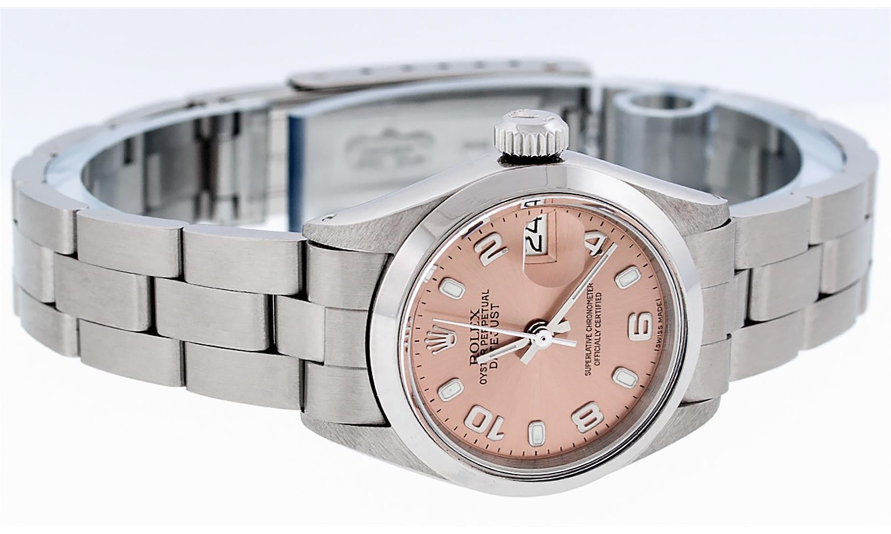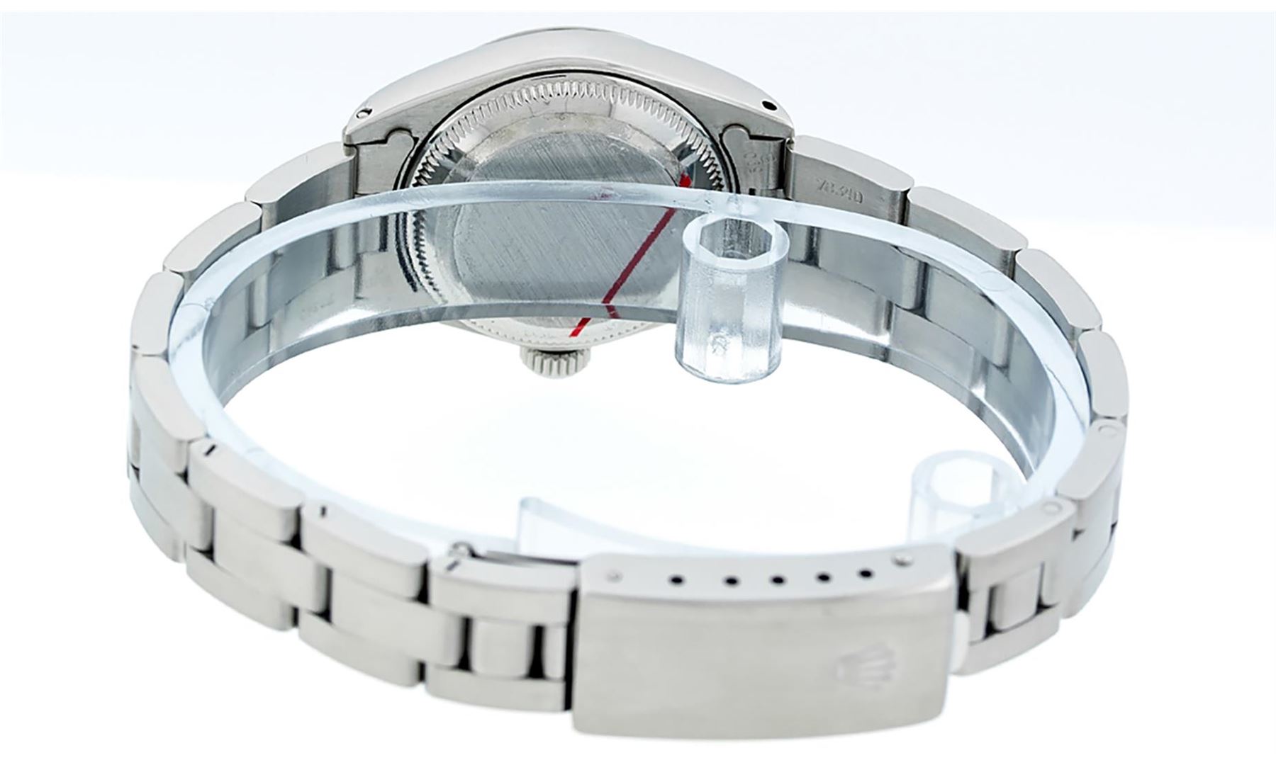 One Ladies Stainless Steel Rolex Datejust Polished Bright with Satin Finish, Serviced & Electronically Tested, Stainless Steel Case: 26mm, Stainless Steel Crown, Bezel: Stainless Steel Smooth Bezel. Custom Crystal: New With Cyclops Lens. Hands: Luminescen