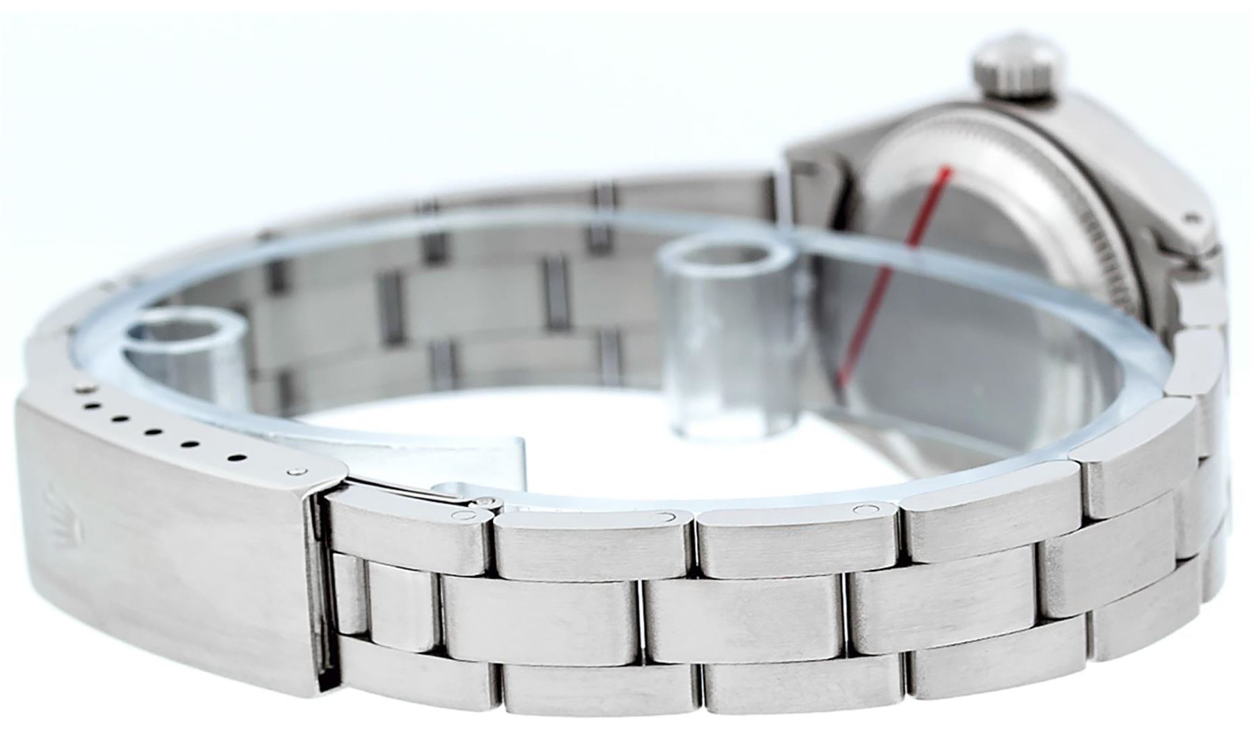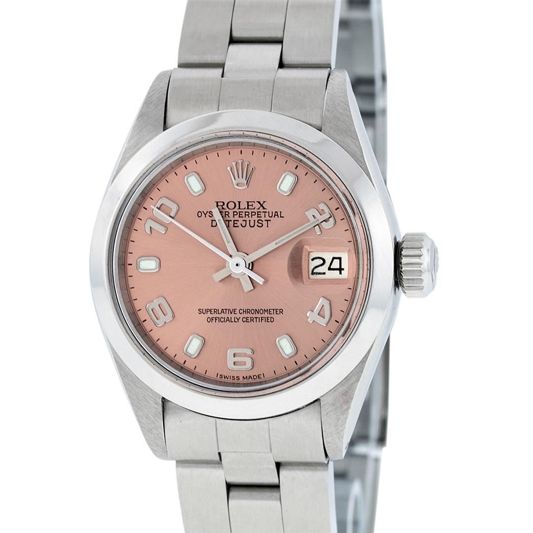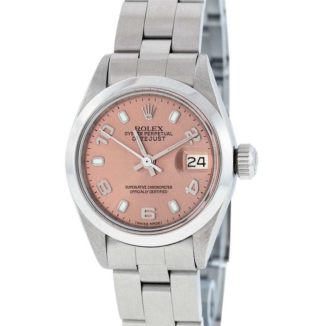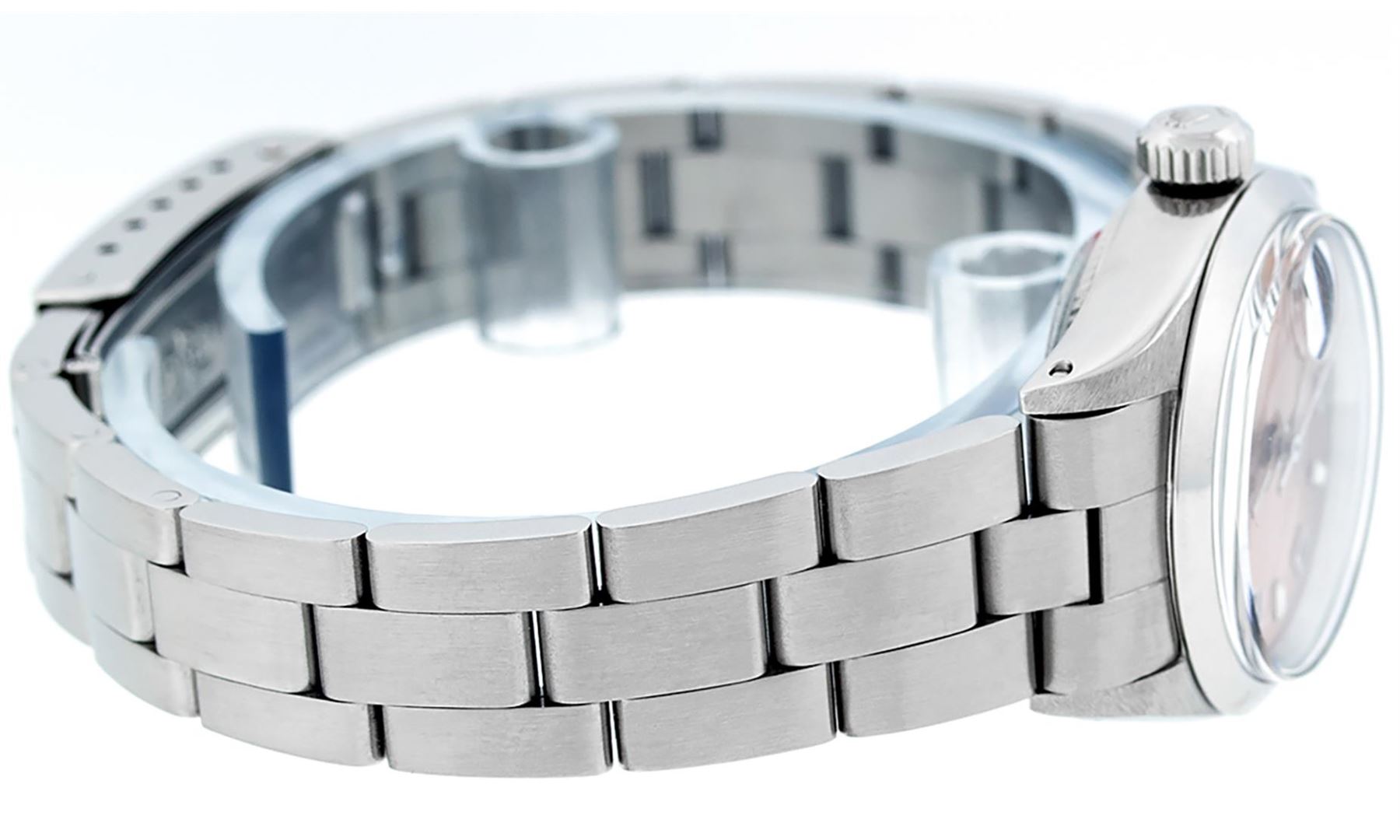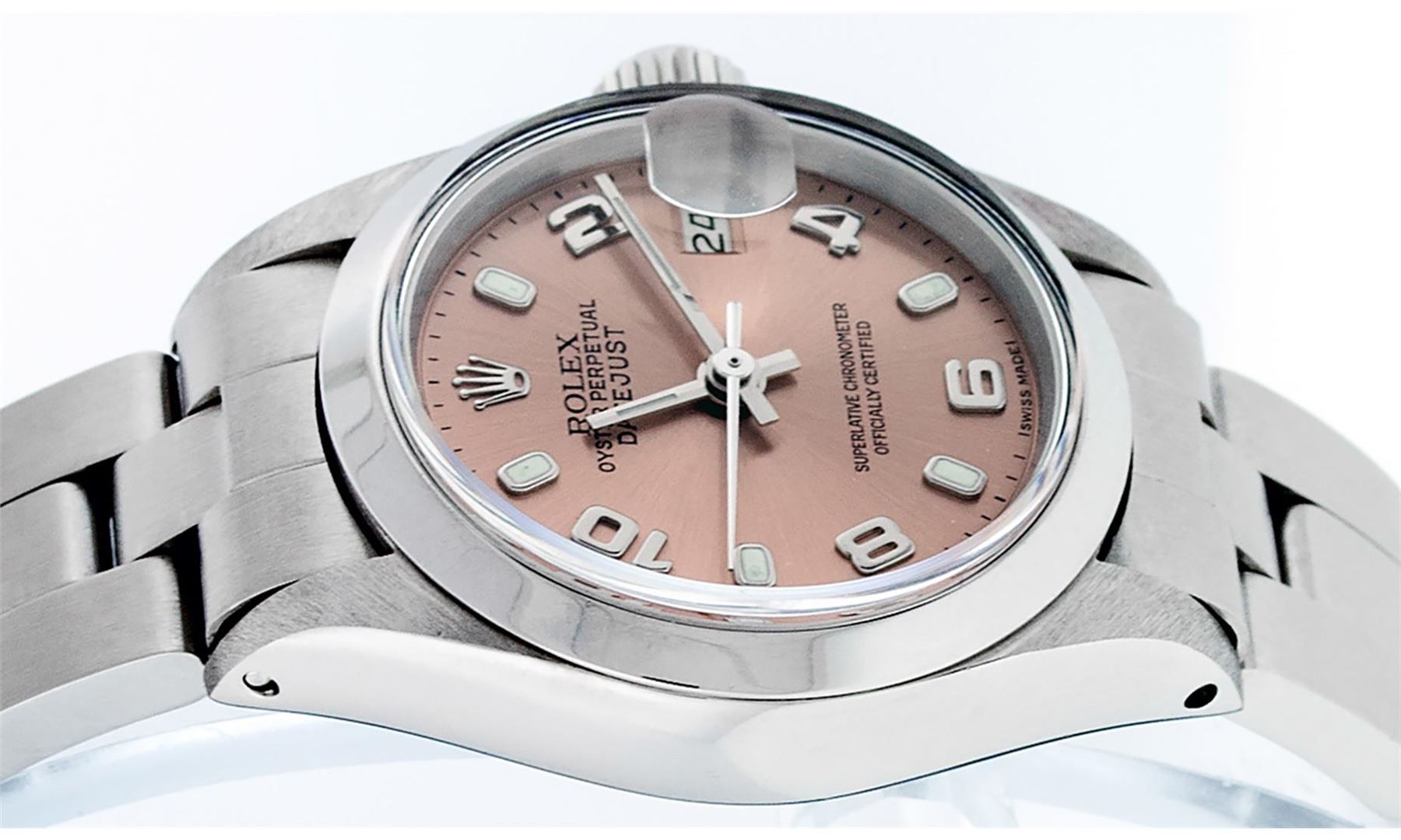 One Ladies Stainless Steel Rolex Datejust Polished Bright with Satin Finish, Serviced & Electronically Tested, Stainless Steel Case: 26mm, Stainless Steel Crown, Bezel: Stainless Steel Smooth Bezel. Custom Crystal: New With Cyclops Lens. Hands: Luminescen