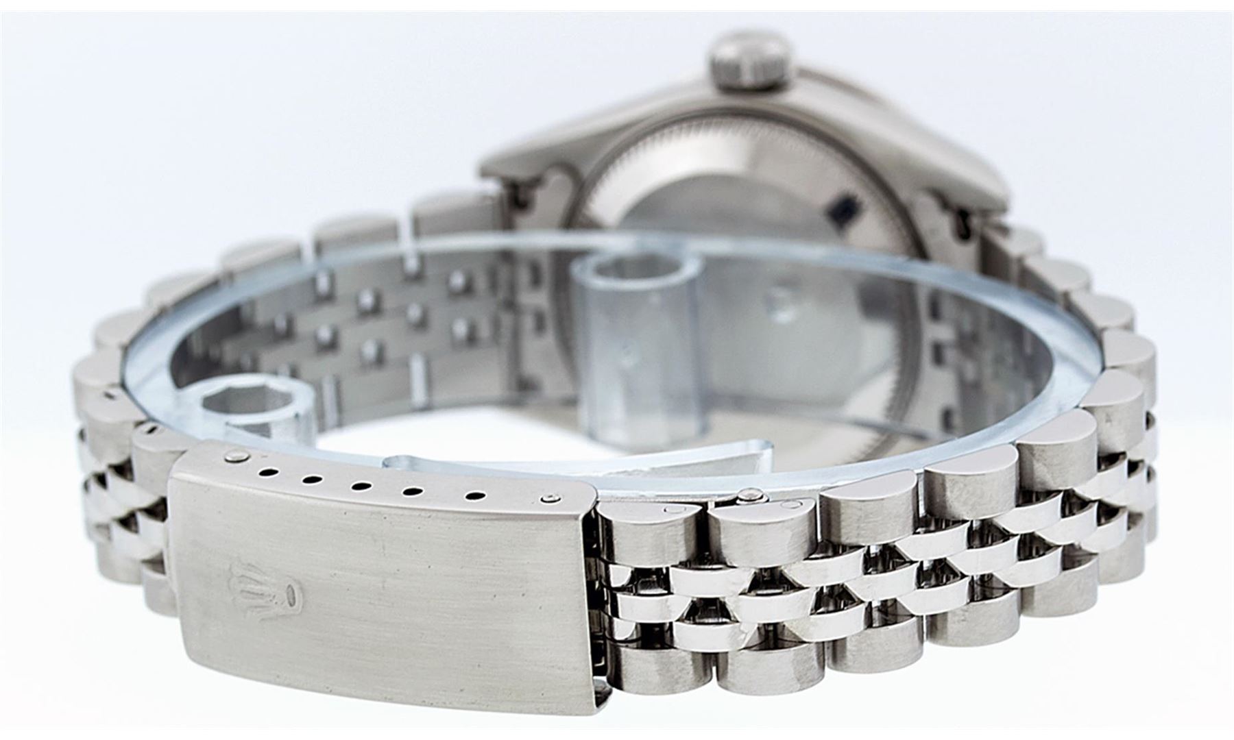 One Quickset Ladies Stainless Steel Rolex Datejust Polished Bright with Satin Finish, Serviced & Electronically Tested, Stainless Steel Case: 26mm, Stainless Steel Crown, Custom Diamond Lugs: 24 Diamonds On Lugs, Clarity: SI-VS, Color: G to H. Custom Bezel: New 18K White Gold Beadset Diamond Bezel, Stone Count: 32 Diamonds On Bezel, Total Weight .70 Carat, Clarity: SI-VS, Color: G to H. Custom Crystal: New Scratch Resistant Synthetic Sapphire Cyclops Lens. Custom Hands: New Luminescent Hands. Movement: Automatic Quickset Winding Movement Caliber 2230. Custom Dial: Refinished Single Cut Salmon String Diamond Dial, 43 Diamonds in Dial G To H In Color, Clarity: VS. Date Window: 3 O'Clock Position Date Display, Model: Caliber 2230 Quickset Datejust. Condition: G-6 Extra Fine. Bracelet: Stainless Steel Jubilee Band. Bright Polish & Satin Finish. 6.0 Inch Length, Adjustable. Standard Clasp, With Rolex Logo. This Watch Has Been Serviced Time Tested And Is In Excellent Condition It Is Free Of All Scratches And Dents.