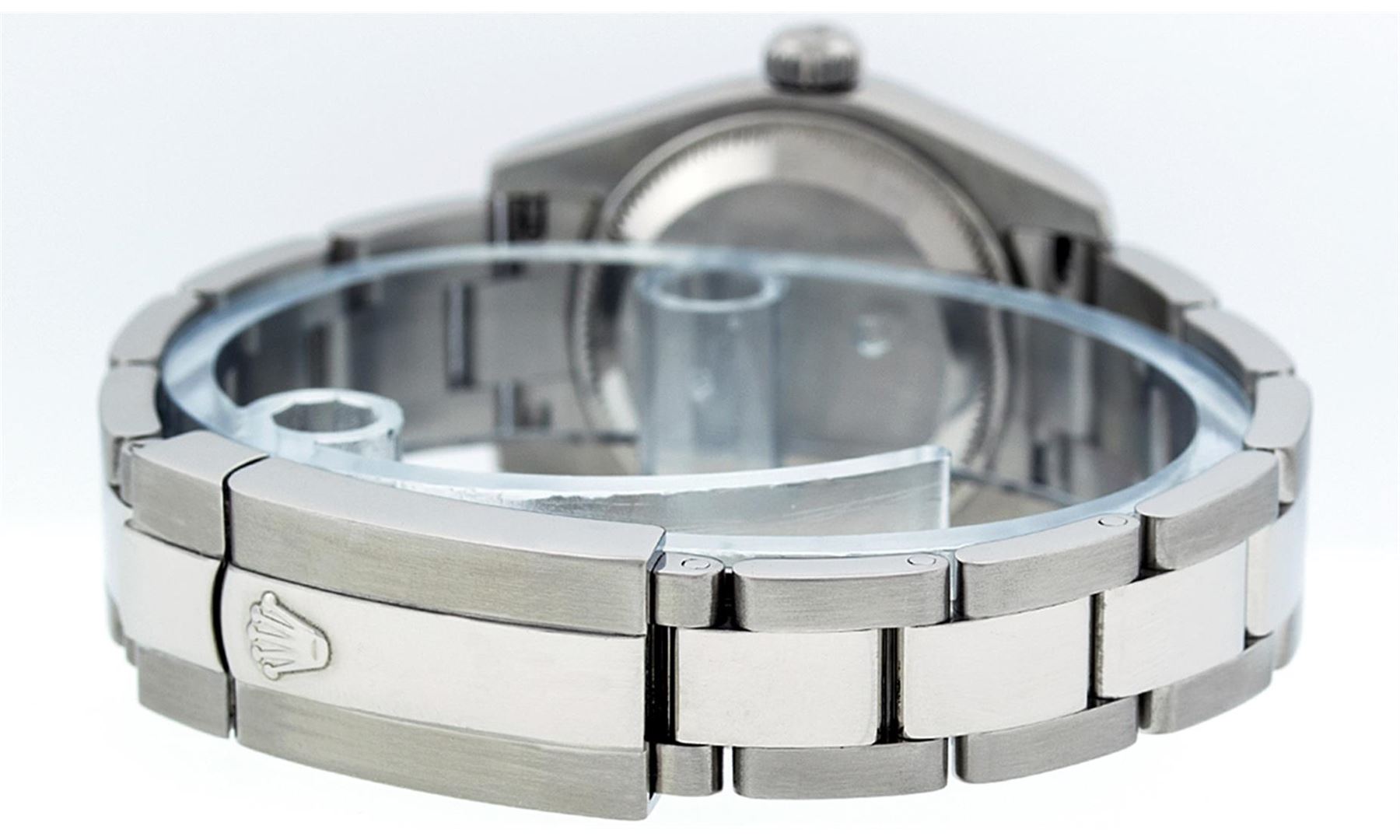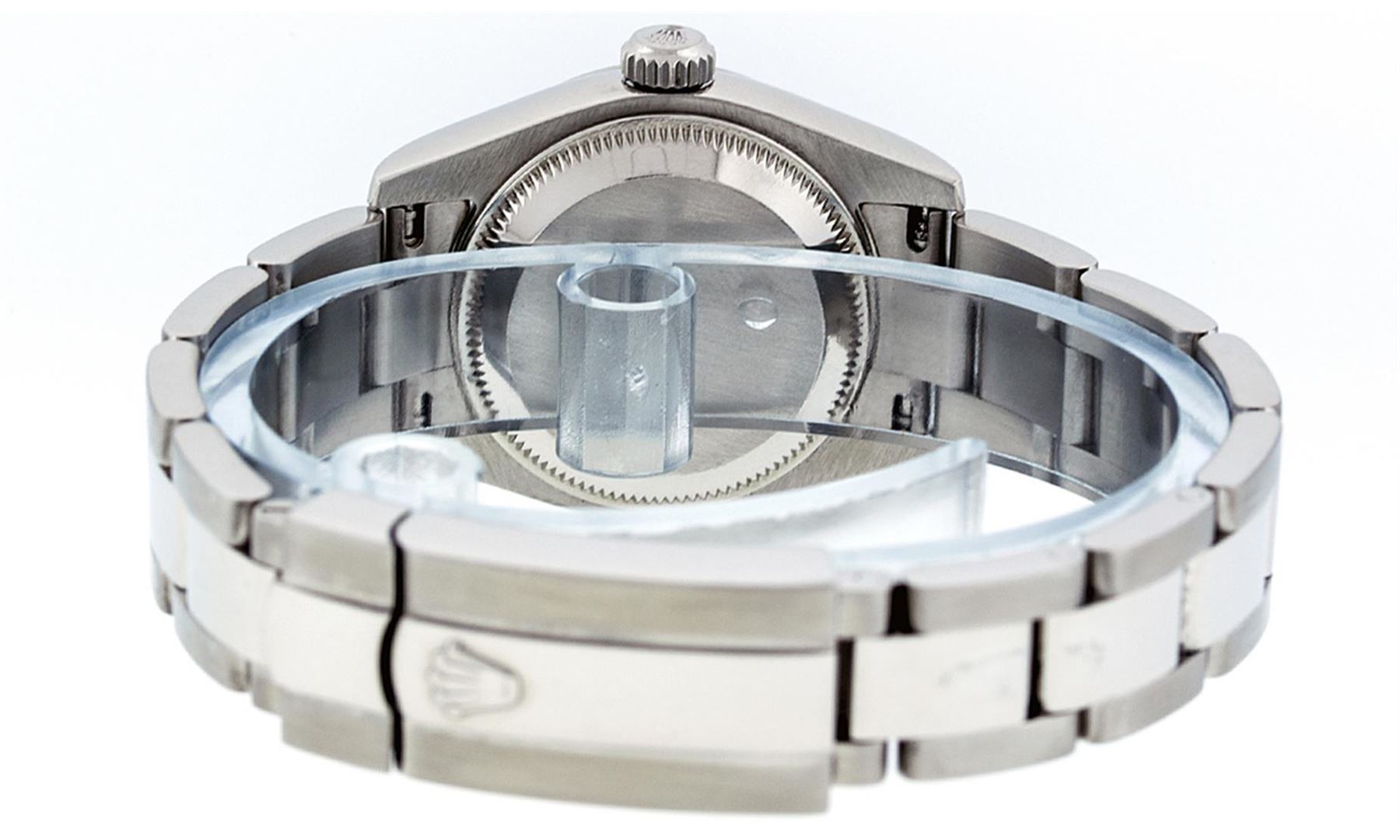 One Ladies Quickset Stainless Steel Rolex Datejust Polished Bright with Satin Finish, Serviced & Electronically Tested, Stainless Steel Case: 26mm, Stainless Steel Crown, Bezel: Stainless Steel Smooth Bezel. Custom Crystal: New Scratch Resistant Sapphire Cyclops Lens. Custom Hands: New Luminescent Hands. Movement: Automatic Winding Movement Caliber 2235. Dial: Salmon Roman Dial With Square Track, Color: G to H, Clarity: VS. Date Window: 3 O'Clock Position Date Display, Model: 179160 Quickset Datejust. Condition: G-6 Extra Fine. Bracelet: Stainless Steel Oyster Band. Bright Polish & Satin Finish. 6.0 Inch Length, Adjustable. Standard Clasp, With Rolex Logo. This Watch Has Been Serviced Time Tested And Is In Excellent Condition It Is Free Of All Scratches And Dents. This Watch Comes With A Rolex Box.